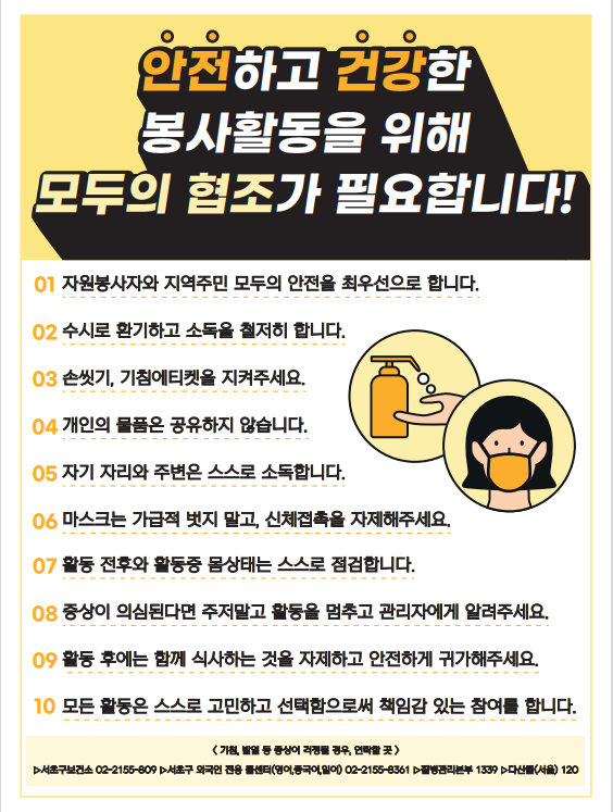 봉사활동도 좋지만 우리 서로의 안전을 위해서 함께 협조하는 것이 정말 중요하답니다!!