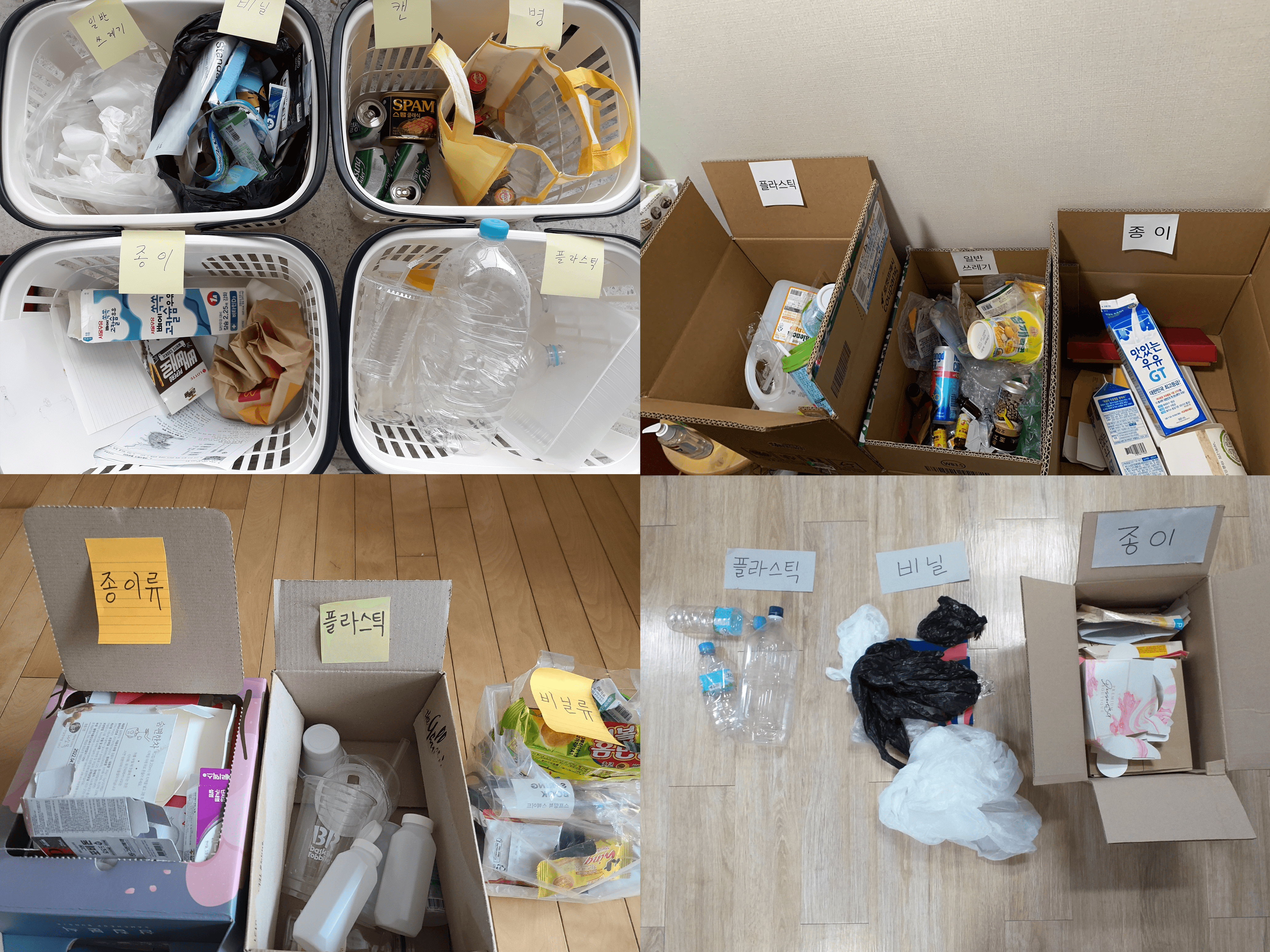 오픈카톡방을 이용해 학생들이 5일 동안 분리배출을 한 사진을 다 같이 보면서, 쓰레기가 얼마나 발생했는지 그리고 어려웠던 점이나 헷갈리는 부분은 없었는지에 대해서 같이 이야기하는 시간을 가졌습니다. 많은 학생들이 조금씩 헷갈려하는 부분도 많았다고 했지만, 대체로 잘 분리 배출하는 모습이 인상적이었습니다!