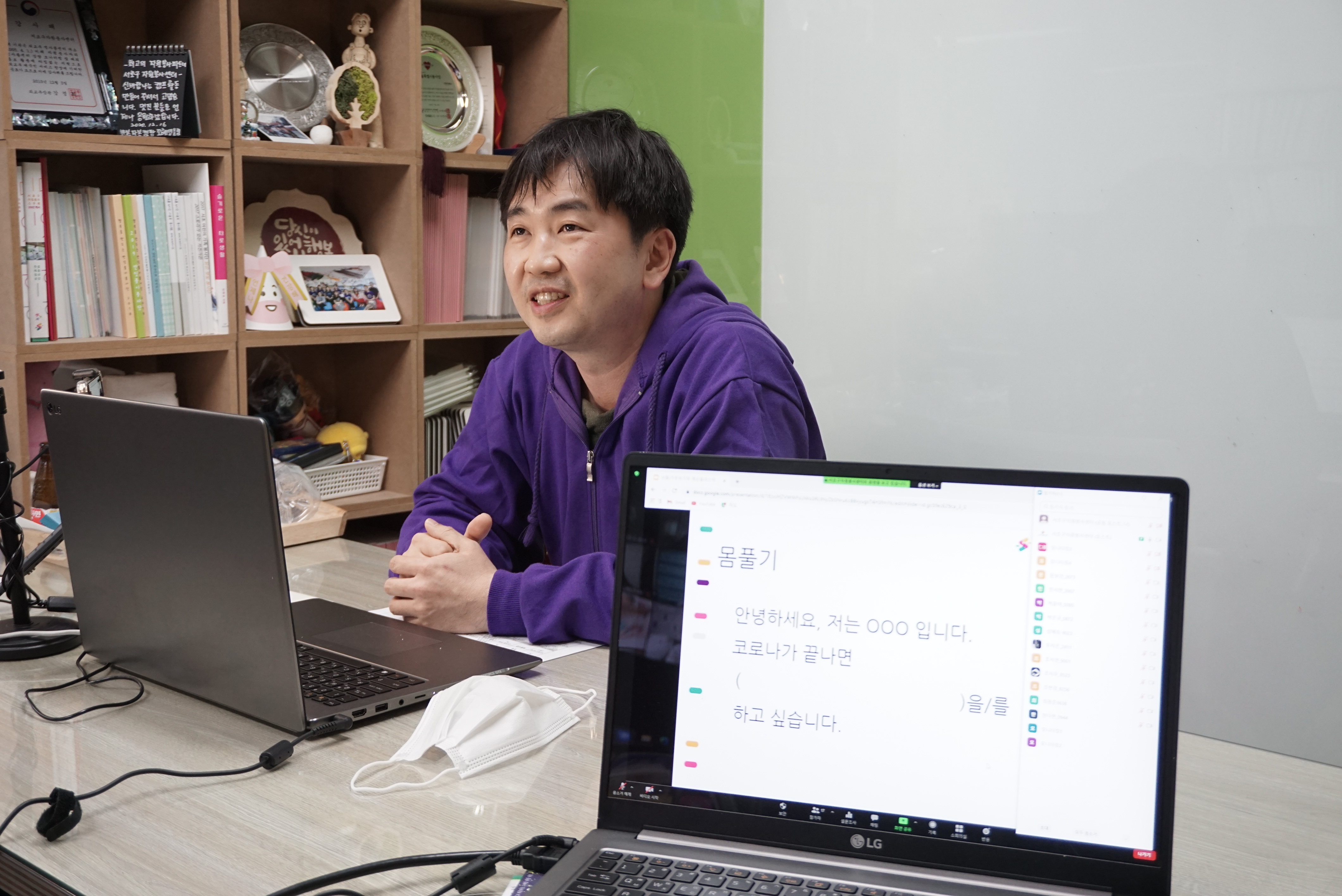 교육에 들어가기 전에 참여한 청소년들과 코로나가 끝나면 무엇이 가장 하고 싶은지 이야기를 나눠보는 시간을 가졌습니다! 놀이공원 가기, 가족과 해외여행, 친구들과 코인 노래방 가서 놀기 같은 이야기를 함께 나누면서 분위기를 풀어가는 모습을 보여주셨습니다.