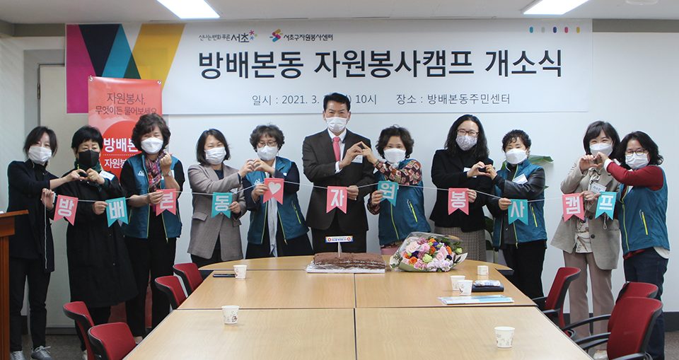 서초구(구청장 조은희) 자원봉사센터(센터장 오영수)는 3월 29일 방배본동 주민센터에서 ‘방배본동 자원봉사캠프’ 개소식을 열었다.