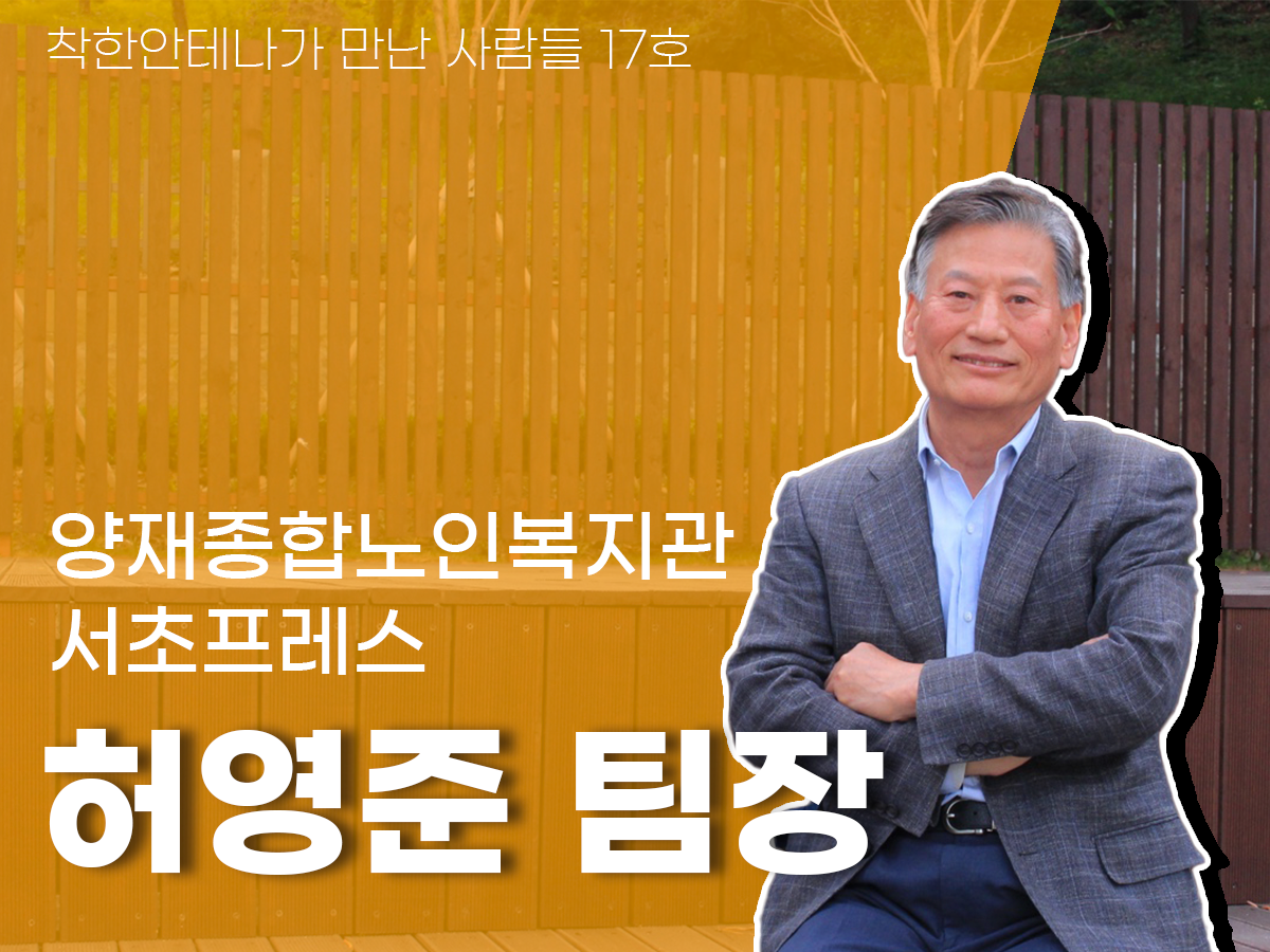 착한안테나 10기의 첫 착만사(착한안테나가 만난 사람들)의 주인공은 2020서초V페스티벌 자원봉사 대상 수상자이신 ‘서초프레스 기자단’(서초구립양재종합노인복지관)의 허영준 팀장님입니다. 팀장님은 기자 활동뿐만아니라 지역사회에 기여하는 사회적 건강을 어떻게 잘 챙길 수 있을까 고민하시며 다양한 방면으로 봉사활동을 하고 계십니다.