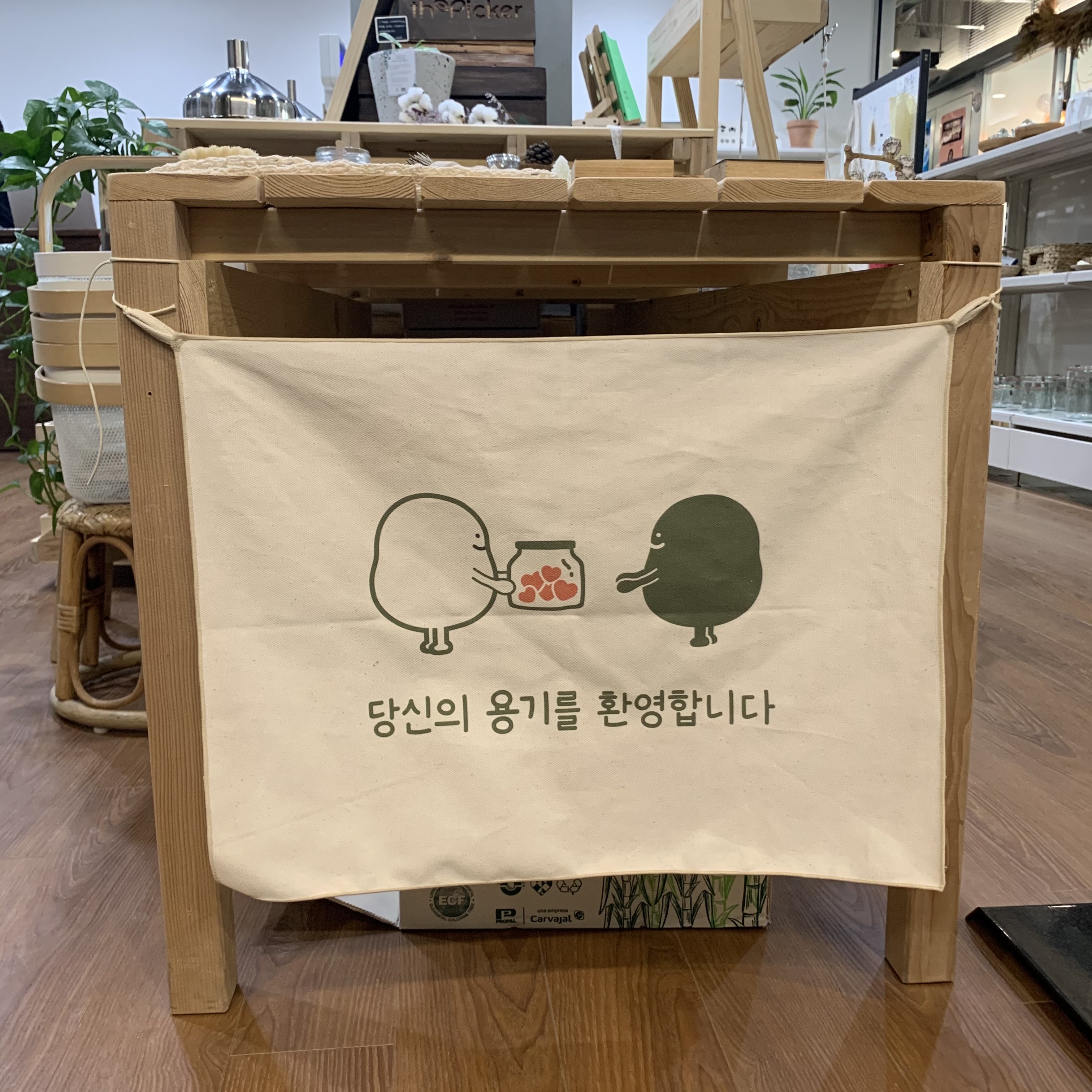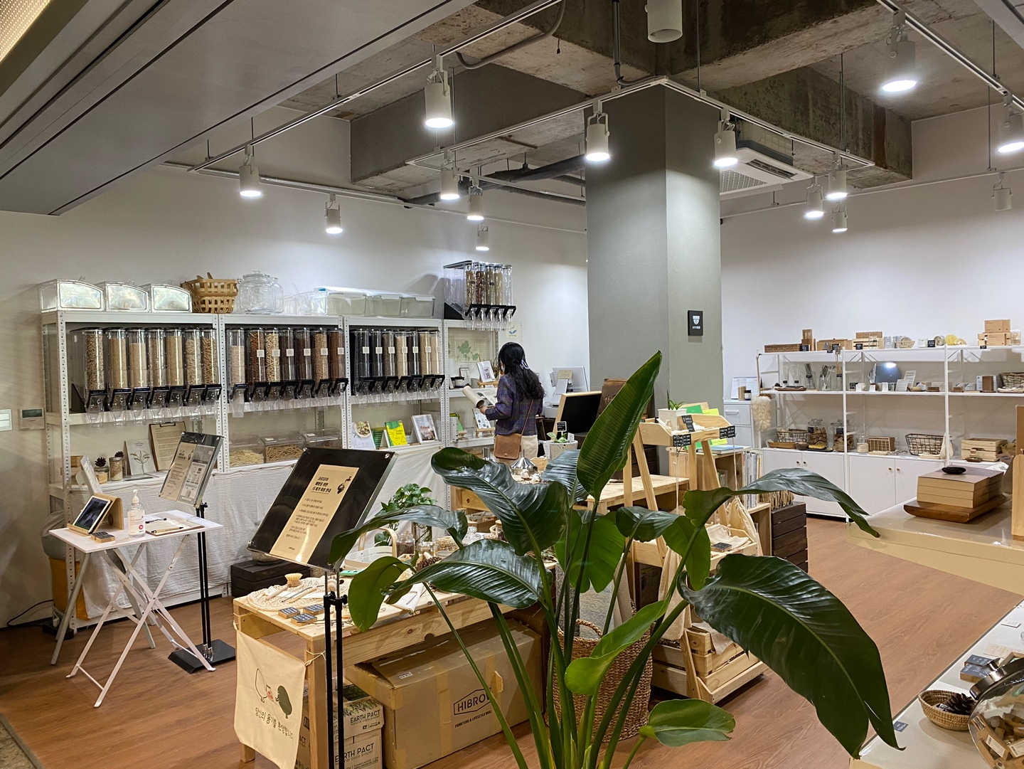 용기를 가져와 직접 유기농현미 등을 담아갈 수 있는 리필스테이션부터 천연 수세미, 대나무칫솔, 소프넛세제, 친환경 노트까지! 일상 속에서 쉽게 쓰이고 있는 자그마한 물품들이 제로웨이스트와 만나, 환경을 위한 물품으로 재탄생하였답니다. 제로웨이스트를 실천하려면 무언가 거창한 일을 해야 할 것만 같았는데, 그렇지 않아도 괜찮다는 듯 다독여주는 기분이었어요. 일상생활의 ‘작은’ 부분부터 바꾸어 나가도 된다는 메시지가 와 닿는 곳이었습니다.