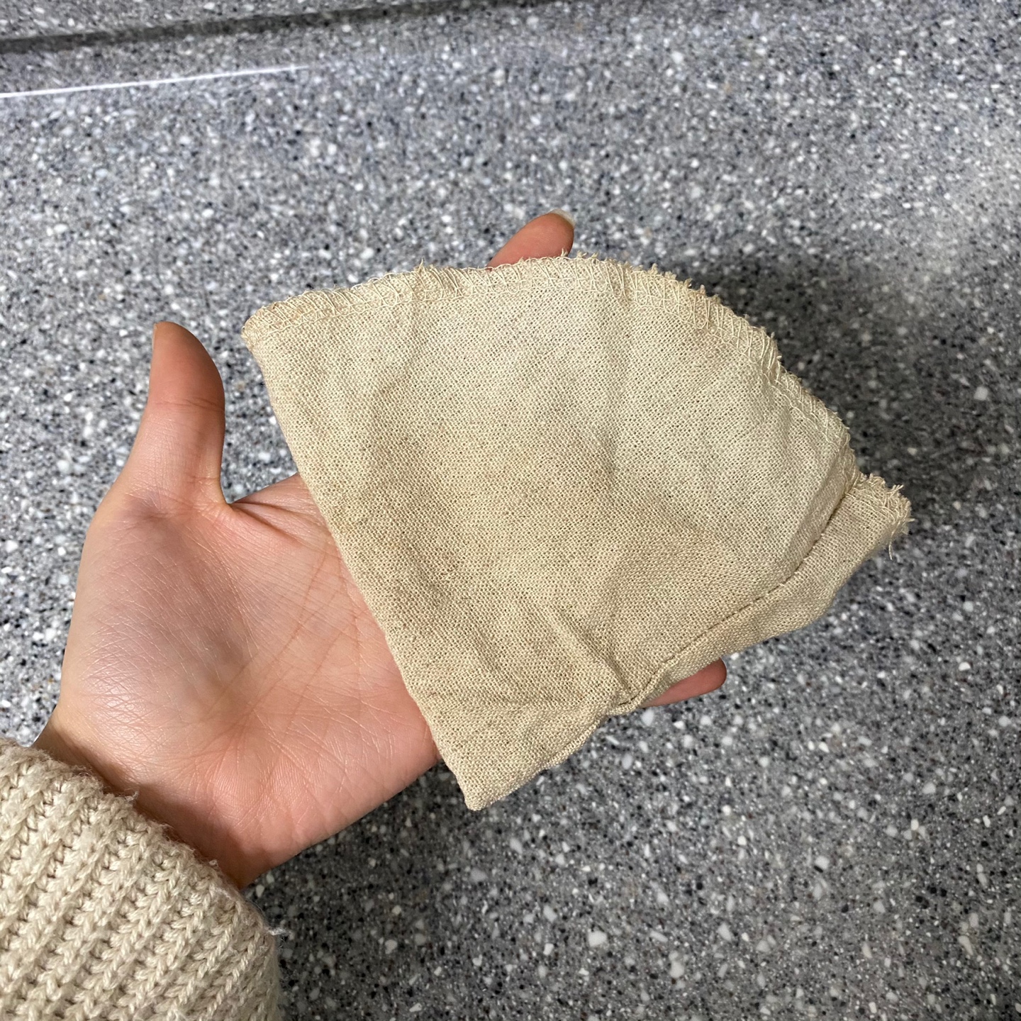 구매한 커피필터는 천 소재로, 쉽게 찢어지지 않도록 튼튼하게 만들어져 있어요.