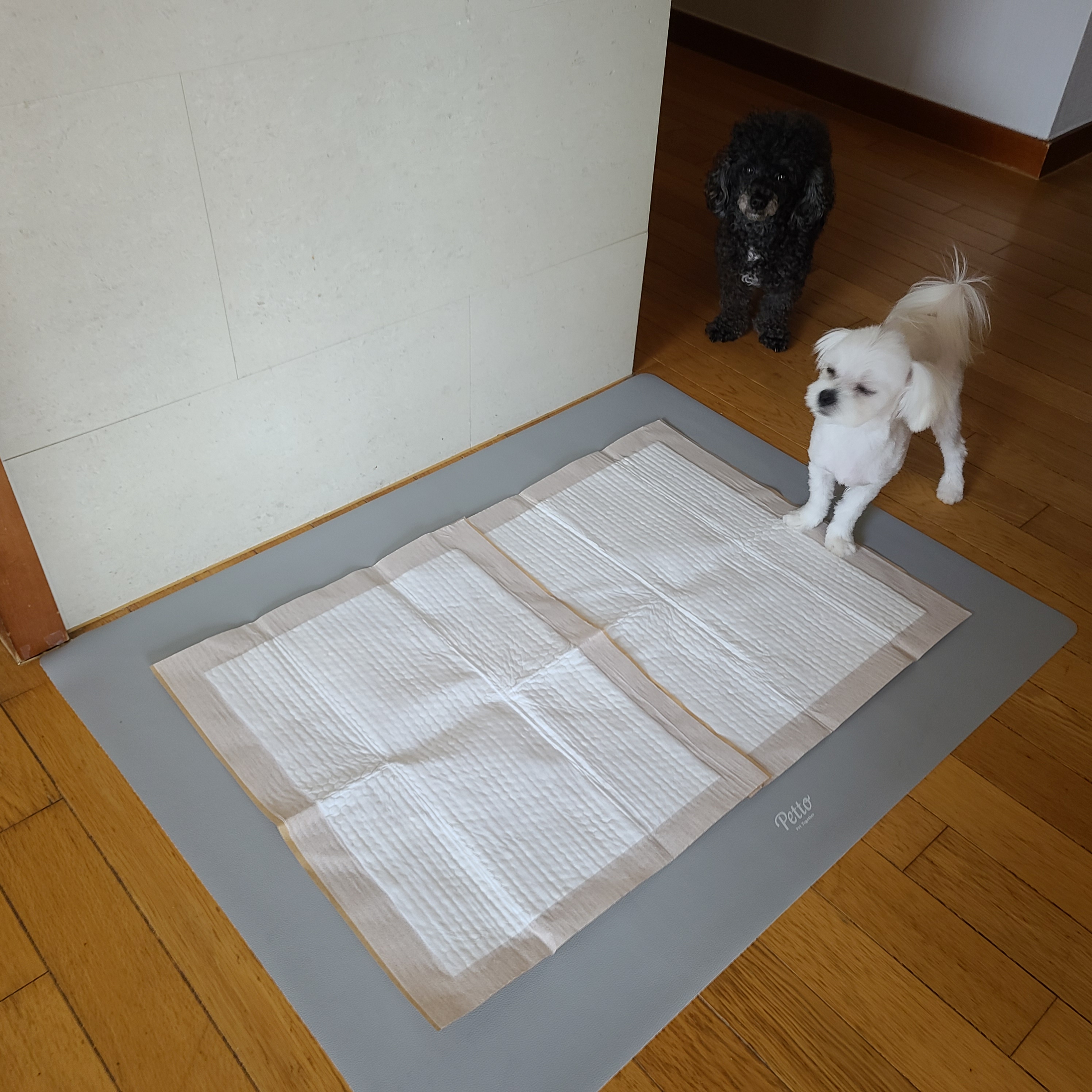 '종이로 된 배변 패드라 강아지들이 거부감 들면 어떡하지'였는데 전혀 그렇지 않아서 다행이었어요.