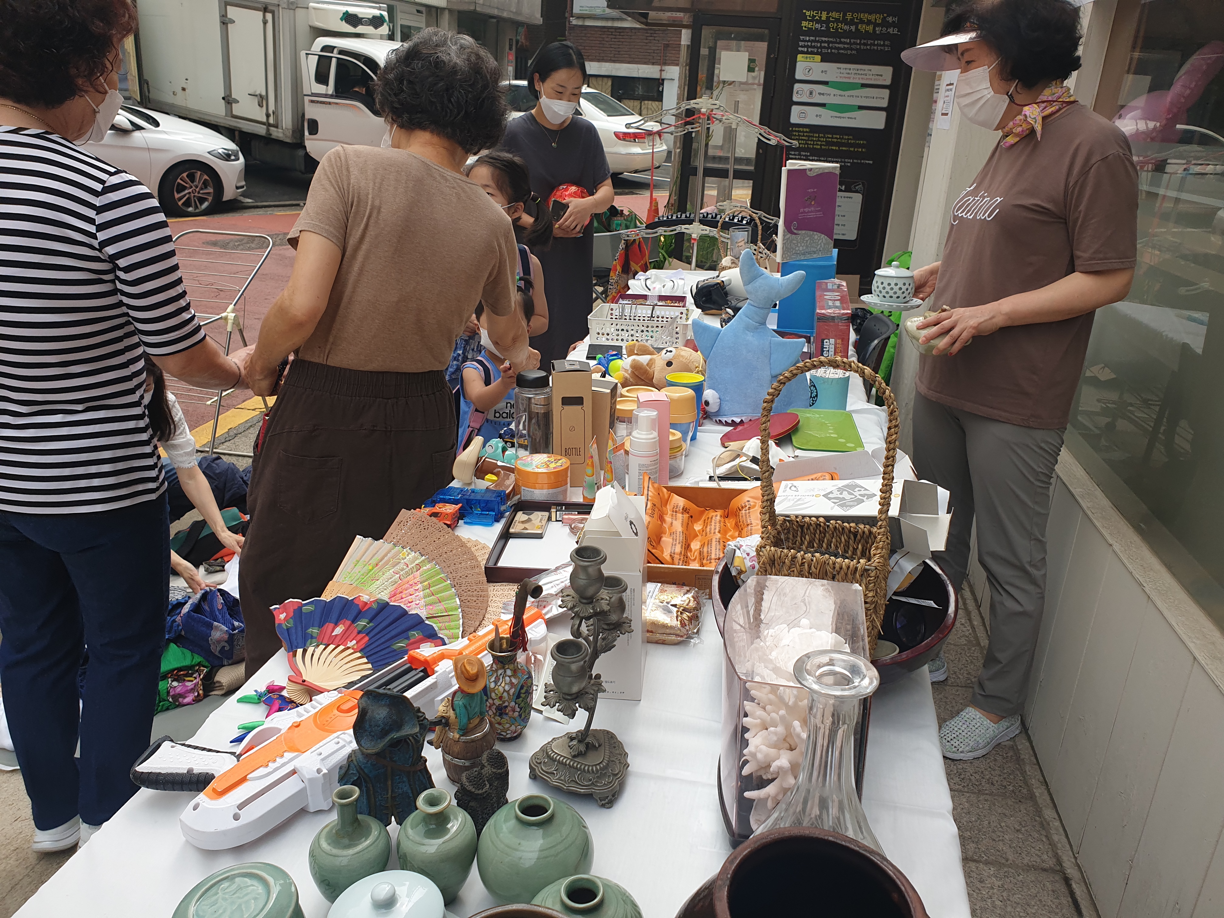 동네에 장터가 열리니 옆집 미용실부터 지나가던 주민들까지