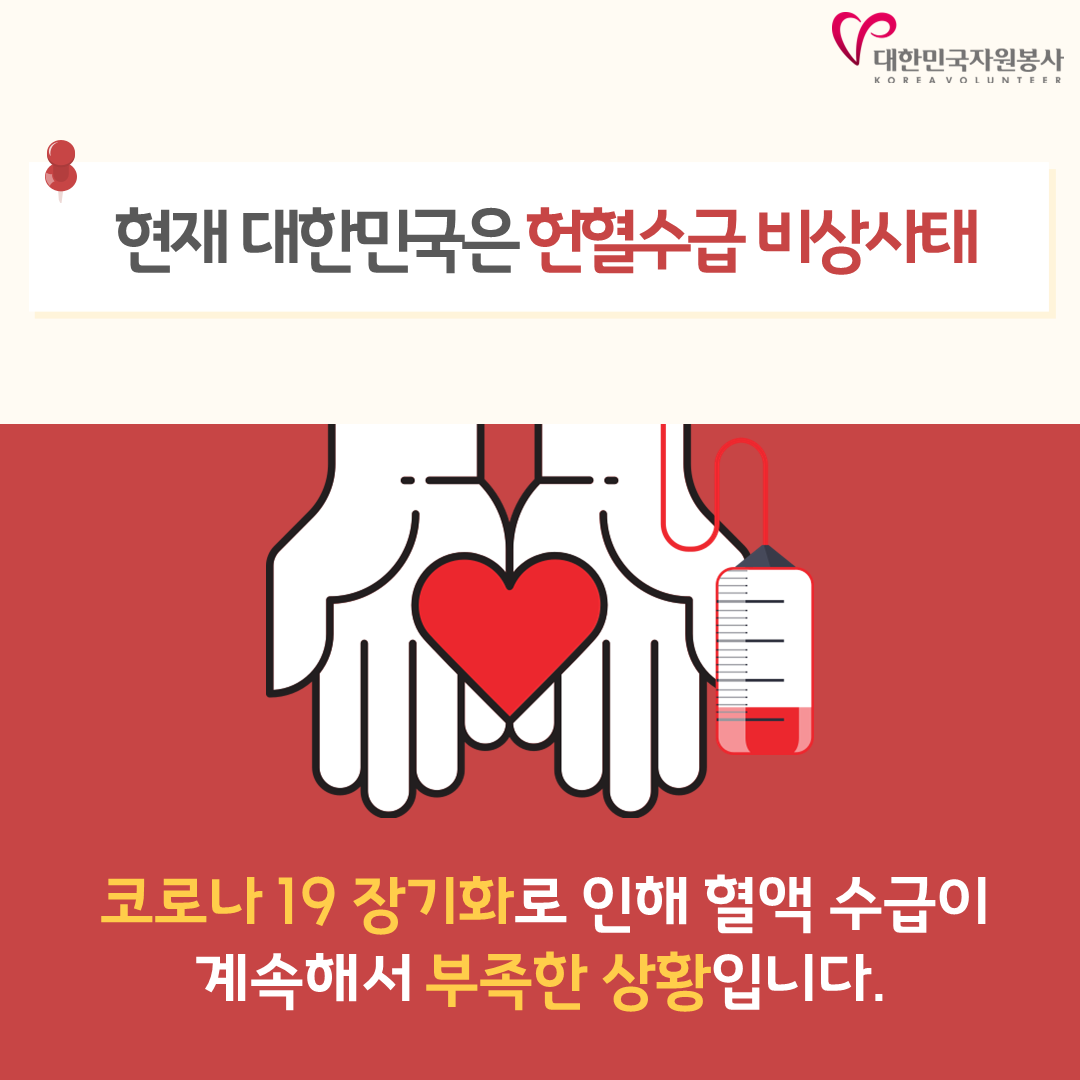 코로나19 장기화로 인해 헌혈이 매무매우 부족하다고 합니다!