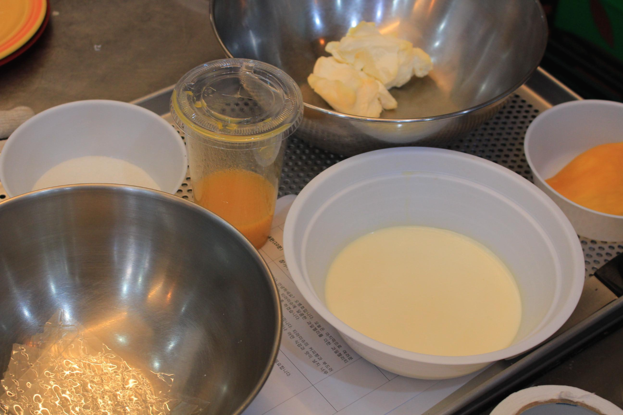 크림치즈와 생크림, 망고과육, 망고주스, 그리고 젤라틴까지 준비 완료~!