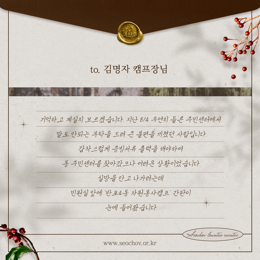 기억하고 계실지 모르겠습니다. 지난 8/4 우연히 들른 주민센터에서