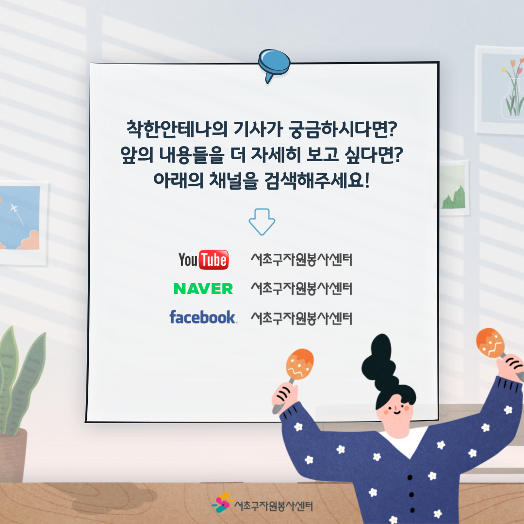 초구자원봉사센터와 착한안테나의 여름을 돌아볼 수 있는 소식지가 도착했습니다💌