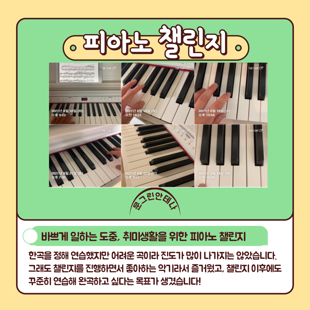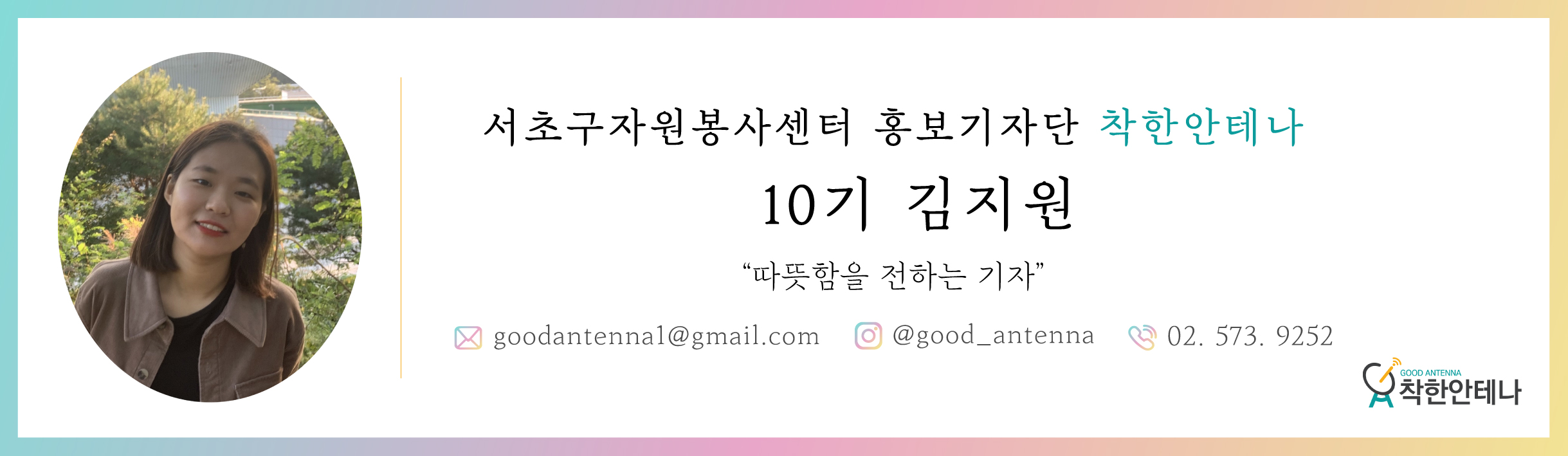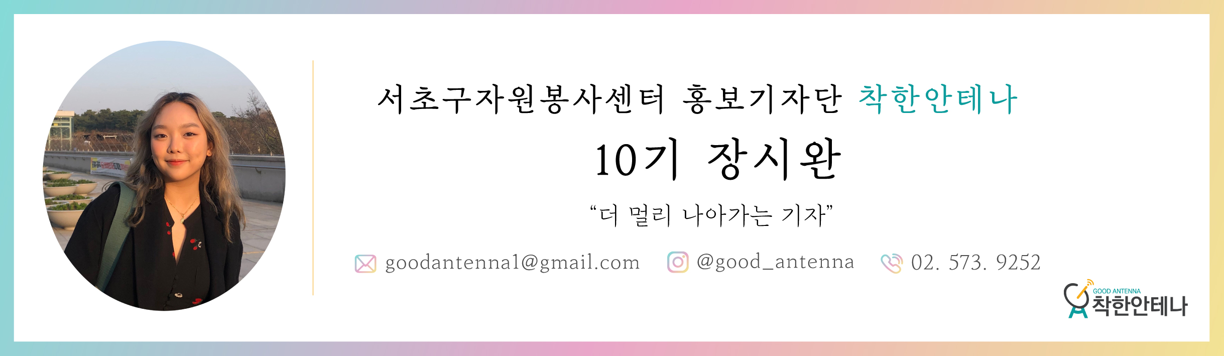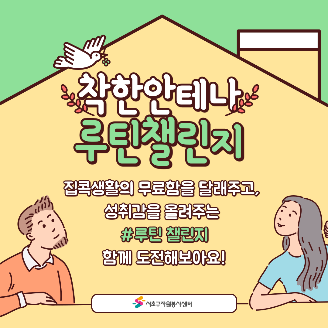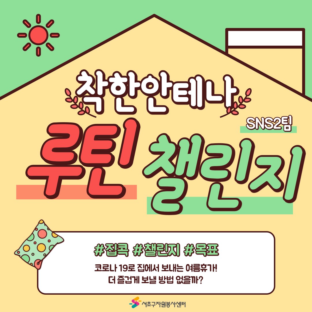 카테고리 없음 착한안테나 8월 워크숍 미션 "안테나야 여름을 부탁해" ② SNS2팀_집콕 루틴챌린지! 2021. 9. 8. [제작: 착한안테나 10기 SNS2팀] 공유하기 게시글 관리 언제나 함께 하고 싶은 최고의 자원봉사 파트너! 서초구자원봉사센터 저작자표시 비영리 변경금지 (새창열림)