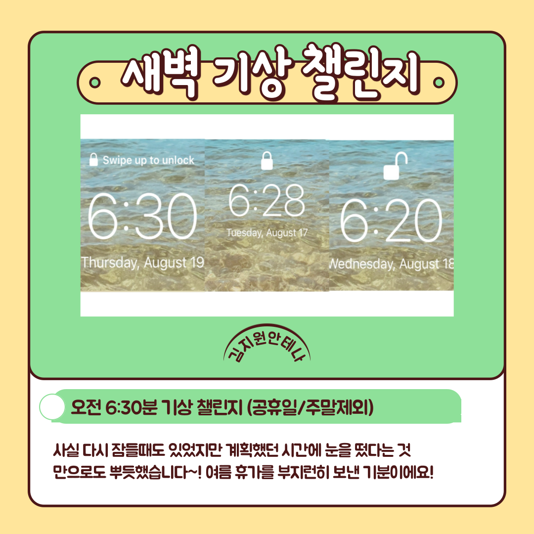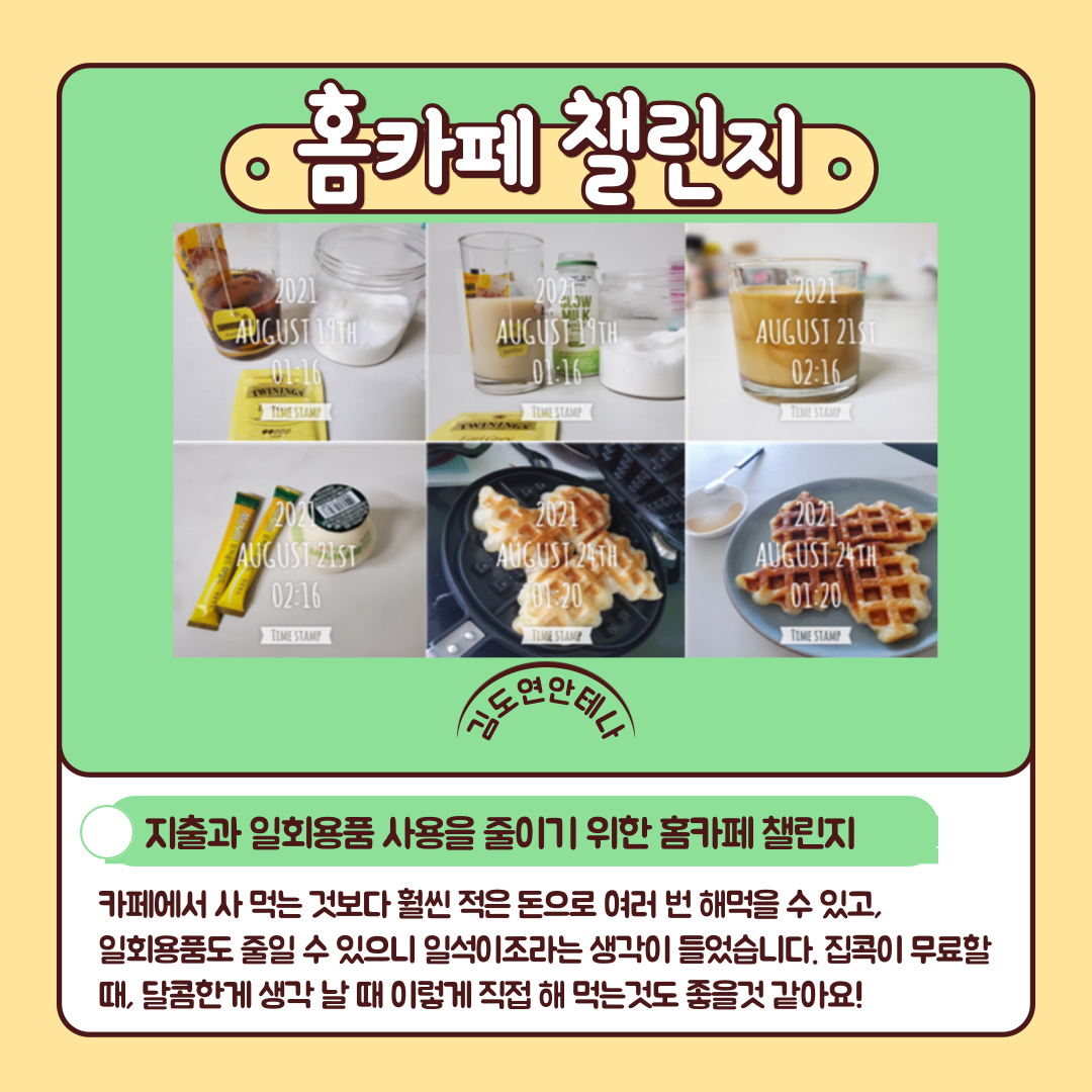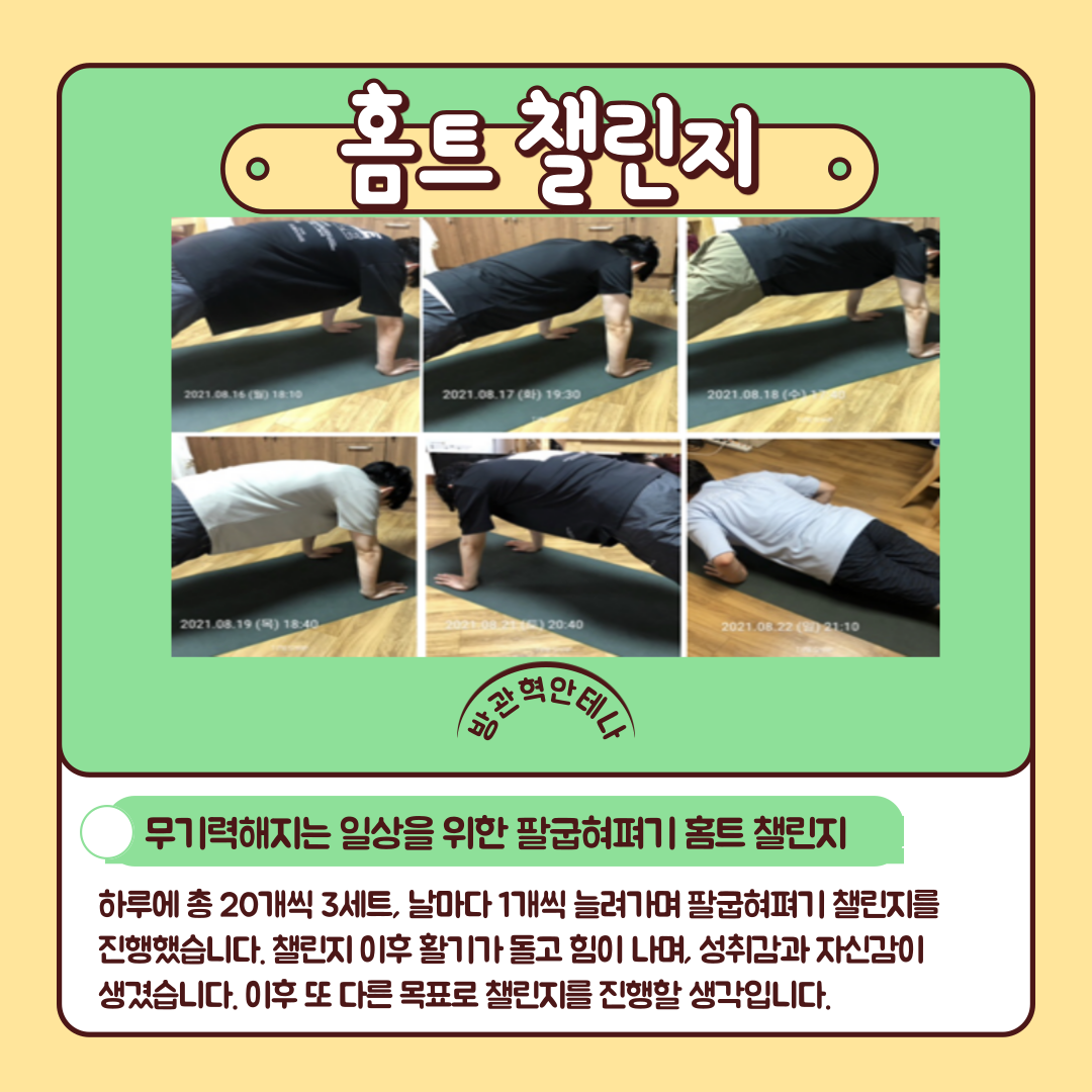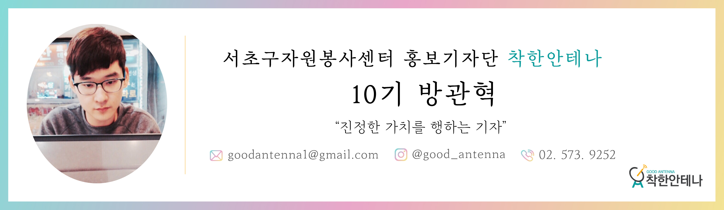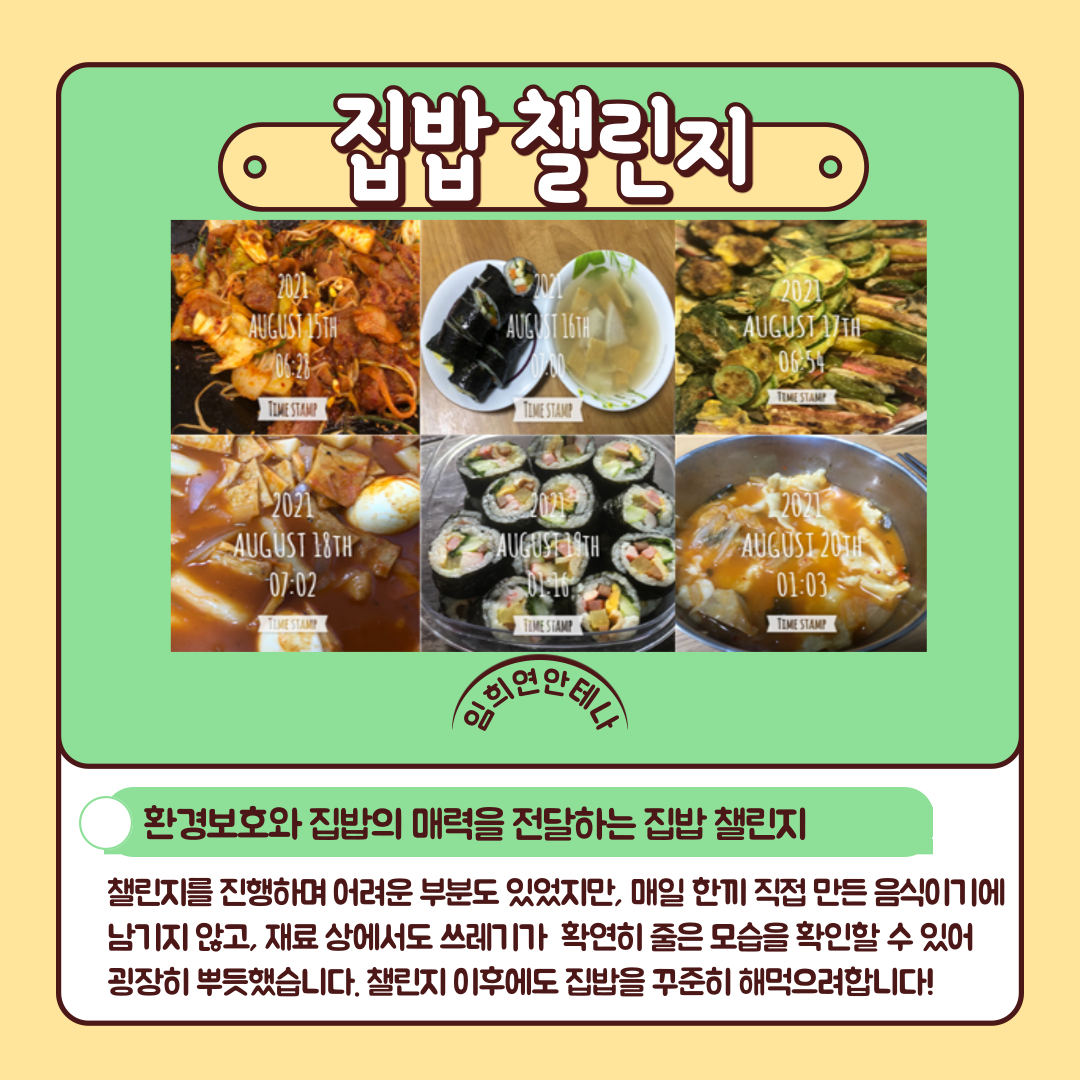 카테고리 없음 착한안테나 8월 워크숍 미션 "안테나야 여름을 부탁해" ② SNS2팀_집콕 루틴챌린지! 2021. 9. 8. [제작: 착한안테나 10기 SNS2팀] 공유하기 게시글 관리 언제나 함께 하고 싶은 최고의 자원봉사 파트너! 서초구자원봉사센터 저작자표시 비영리 변경금지 (새창열림)