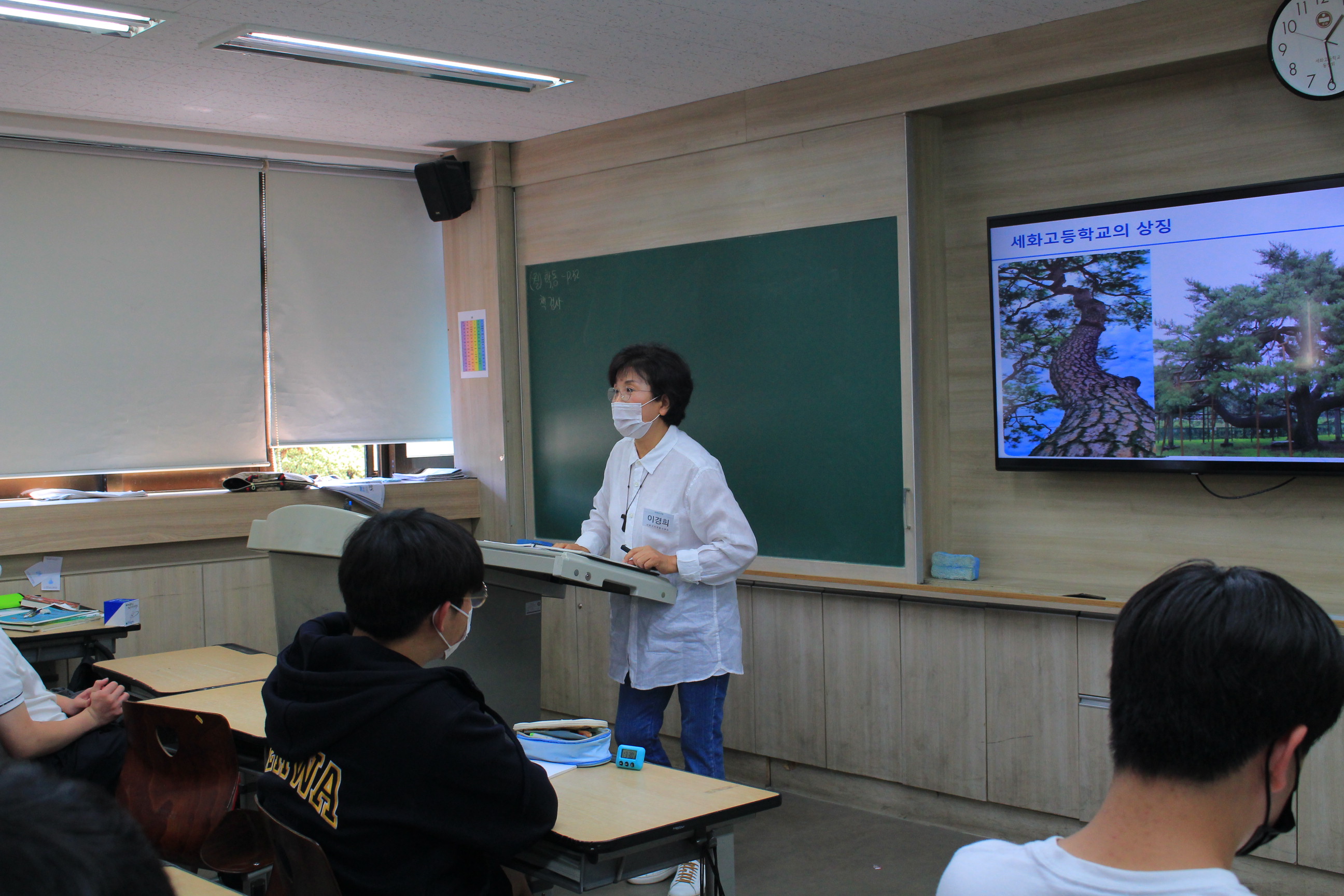 새학기가 시작되는 9월, 착한안테나는 서초구 신반포로에 위치해 있는 세화고등학교에 찾아갔습니다. 세화고등학교 2학년 교실에서는 서초구자원봉사센터 봉사자분들의 ‘봉사 강의’가 진행되고 있었습니다.