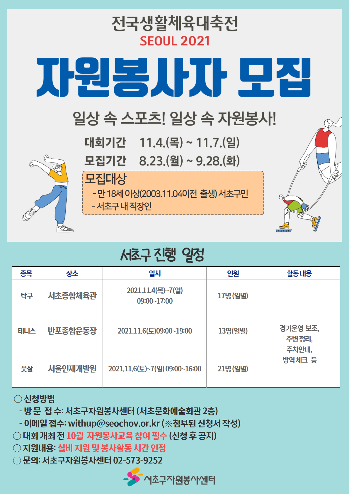 | 서초구자원봉사센터 직원 채용 결과 안내 (0) | 2021.07.15 |