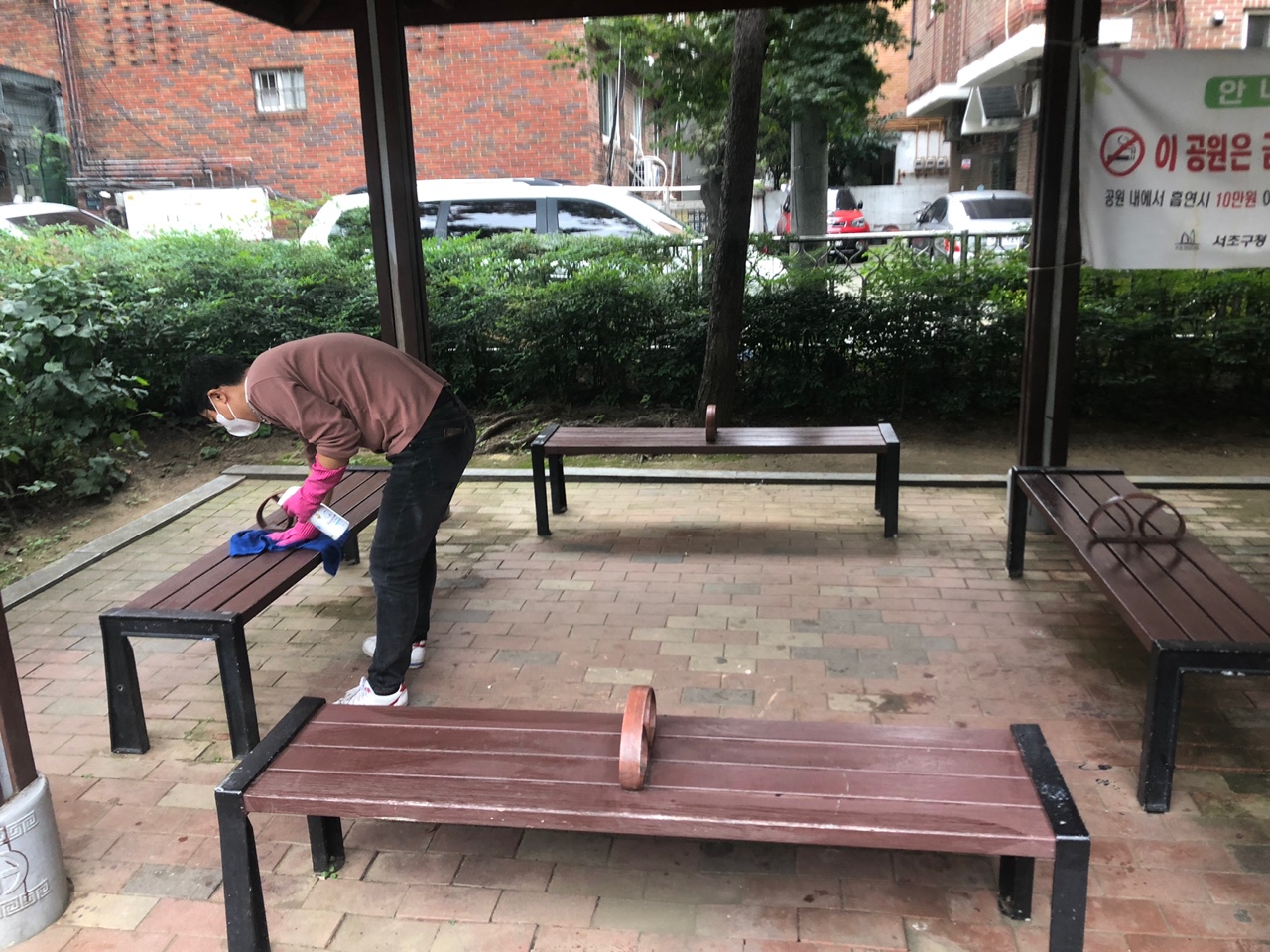자원봉사자분들과 진행되며. 쾌적한 공원을 이용하시도록 방역활동도 같이 진행됩니다.
