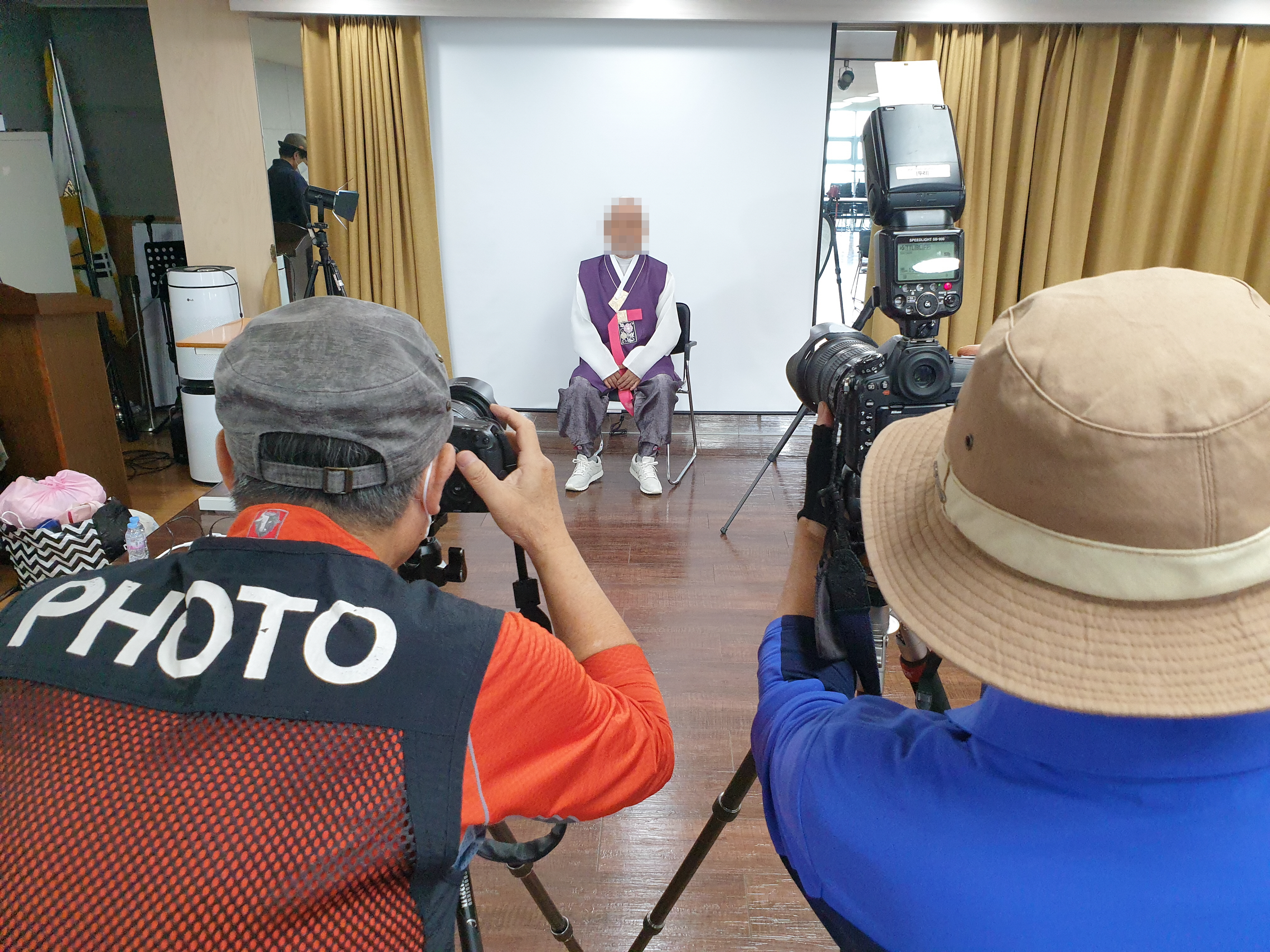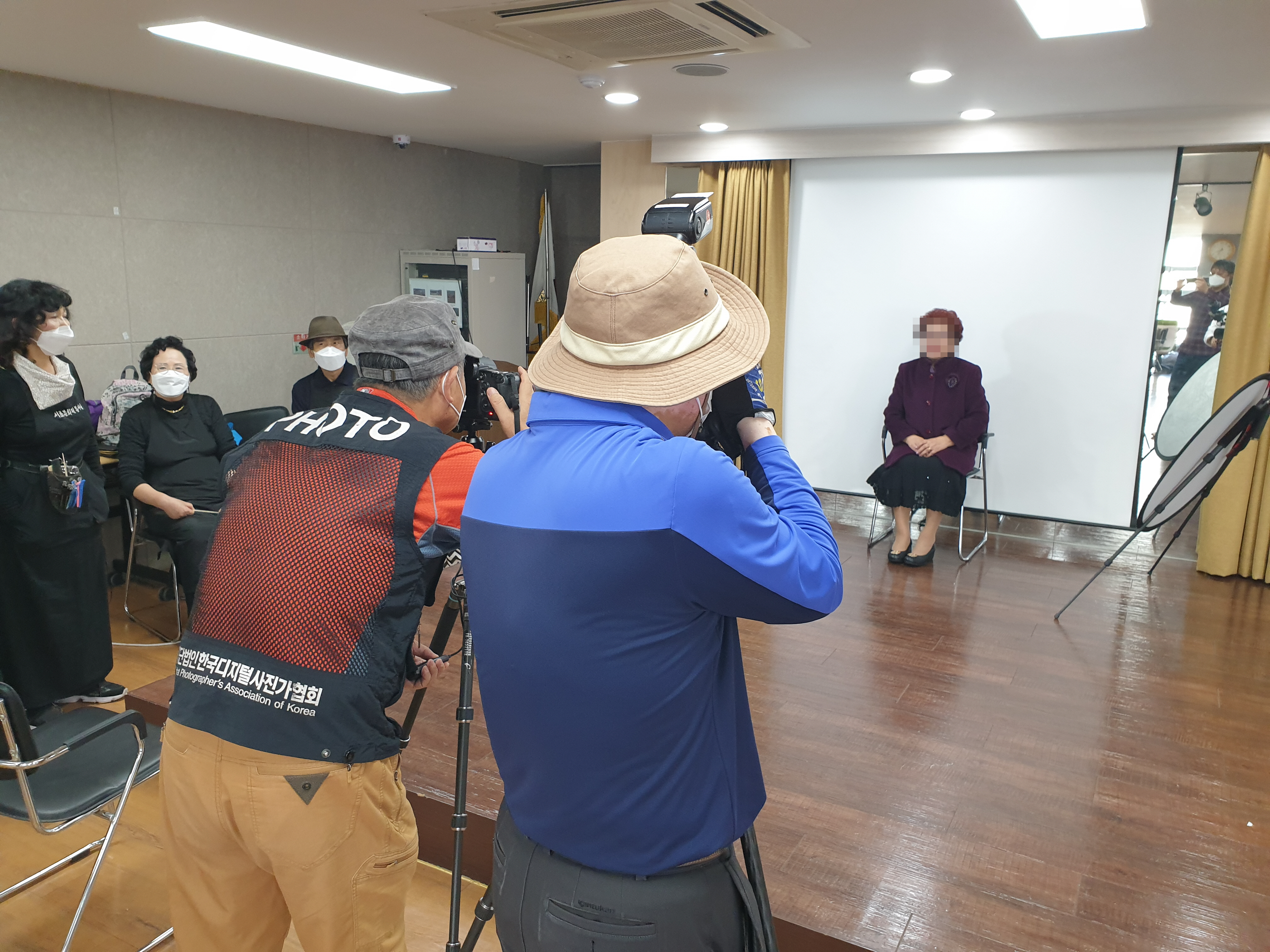 단정히 정리된 어르신들은 한국디지털사진가협회 서초지회 봉사자분들이 멋있게 사진을 촬영해주십니다. 흔히 하는 영정사진처럼 찍는 것이 아닌 남은 인생을 즐겁게 사실 수 있게 힘이 되는 능동적인 장수사진을 찍는 봉사자 분들입니다.