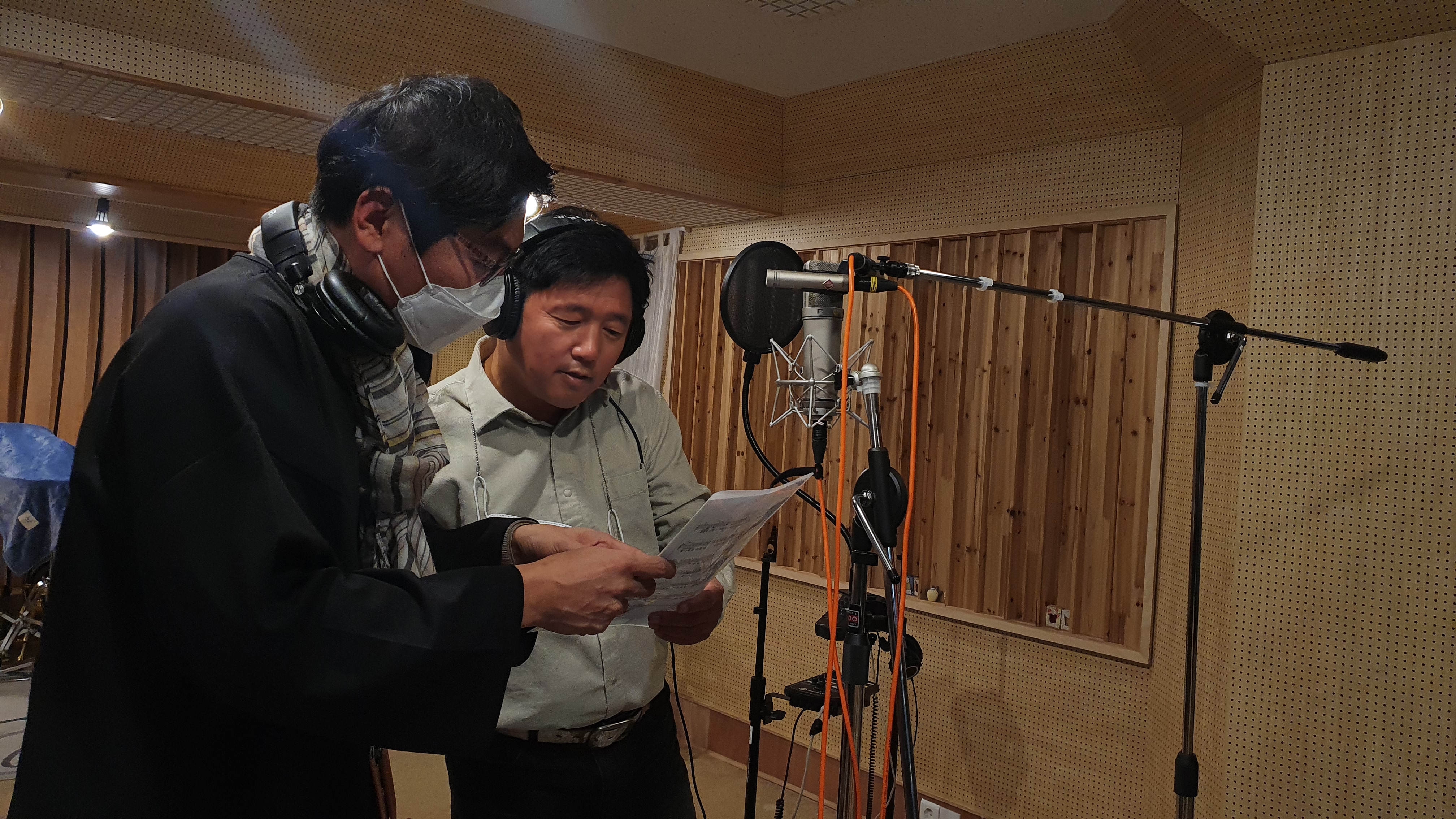 각자 준비해온 소절을 한음 한음 고운 소리로 녹음하는 서초 꿈 중창단!