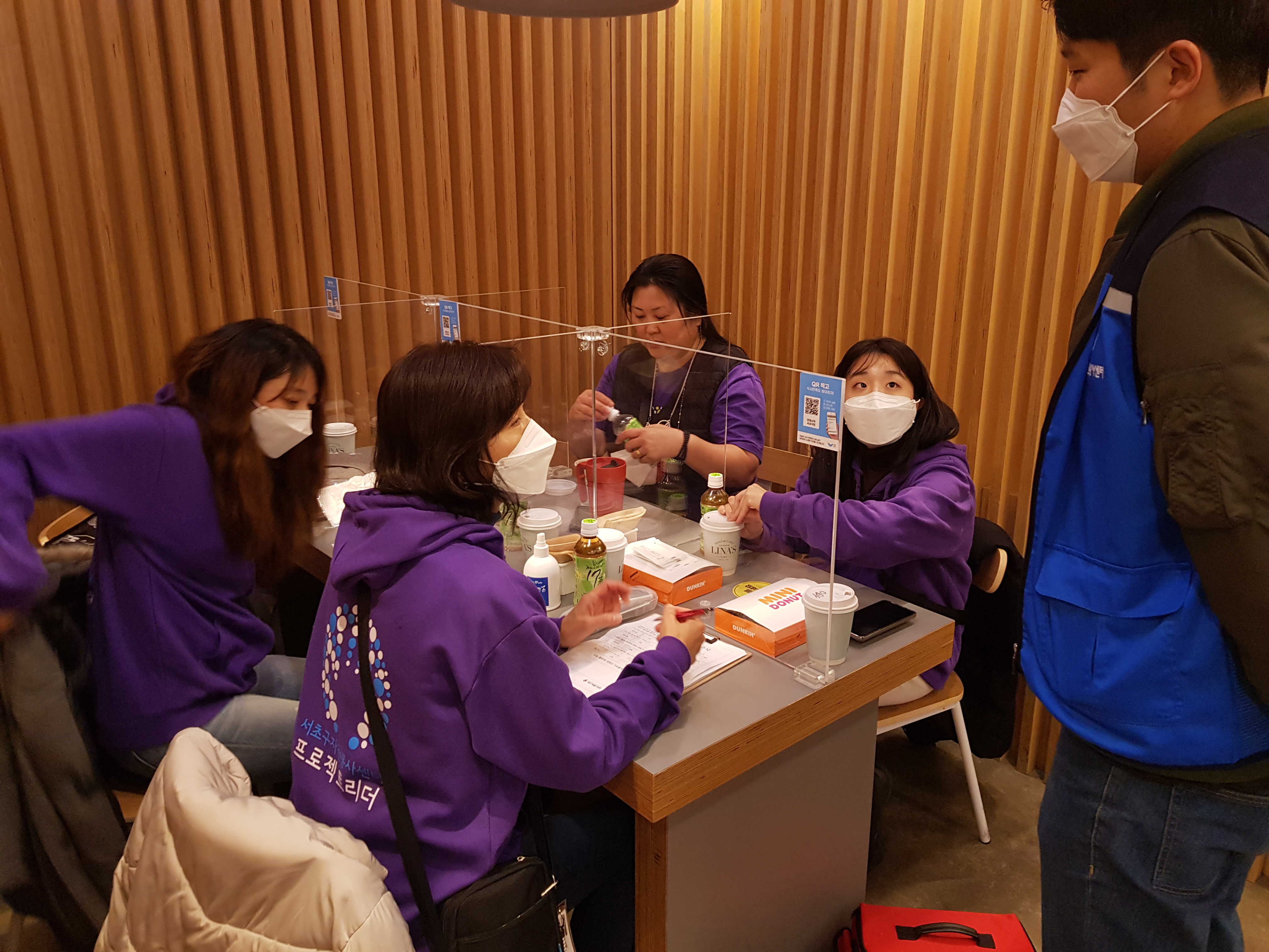코로나19에도 안전한 활동이 이루어질 수 있도록 온도체크 및 방역이 이루어졌습니다.