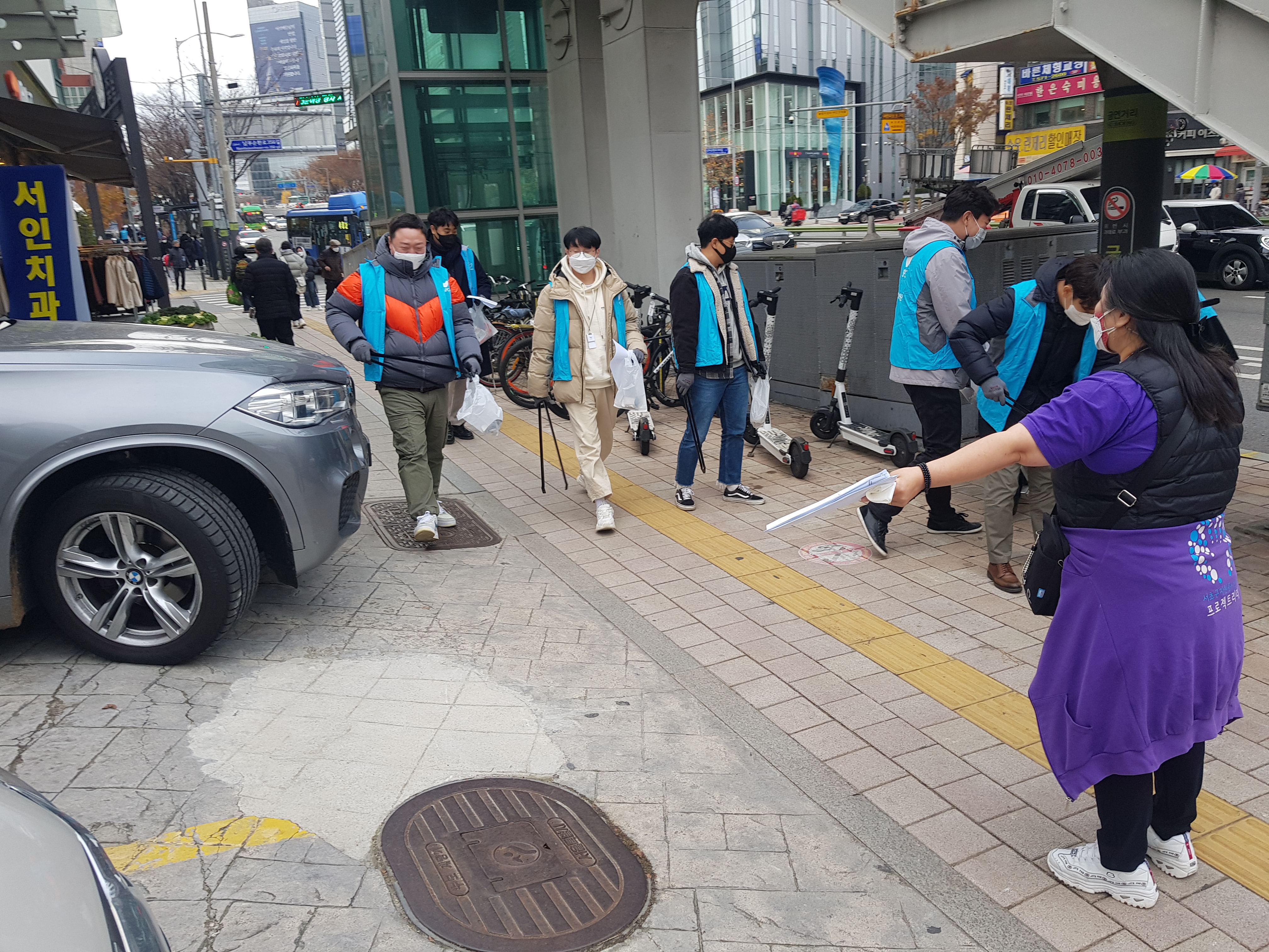 본격적인 줍깅활동 시작에 앞서 활동 일정, 코스안내와 왜 '양재동에서 줍깅을 해야하는지' 이슈와 공감에 대한 안내가 이루어졌는데요!