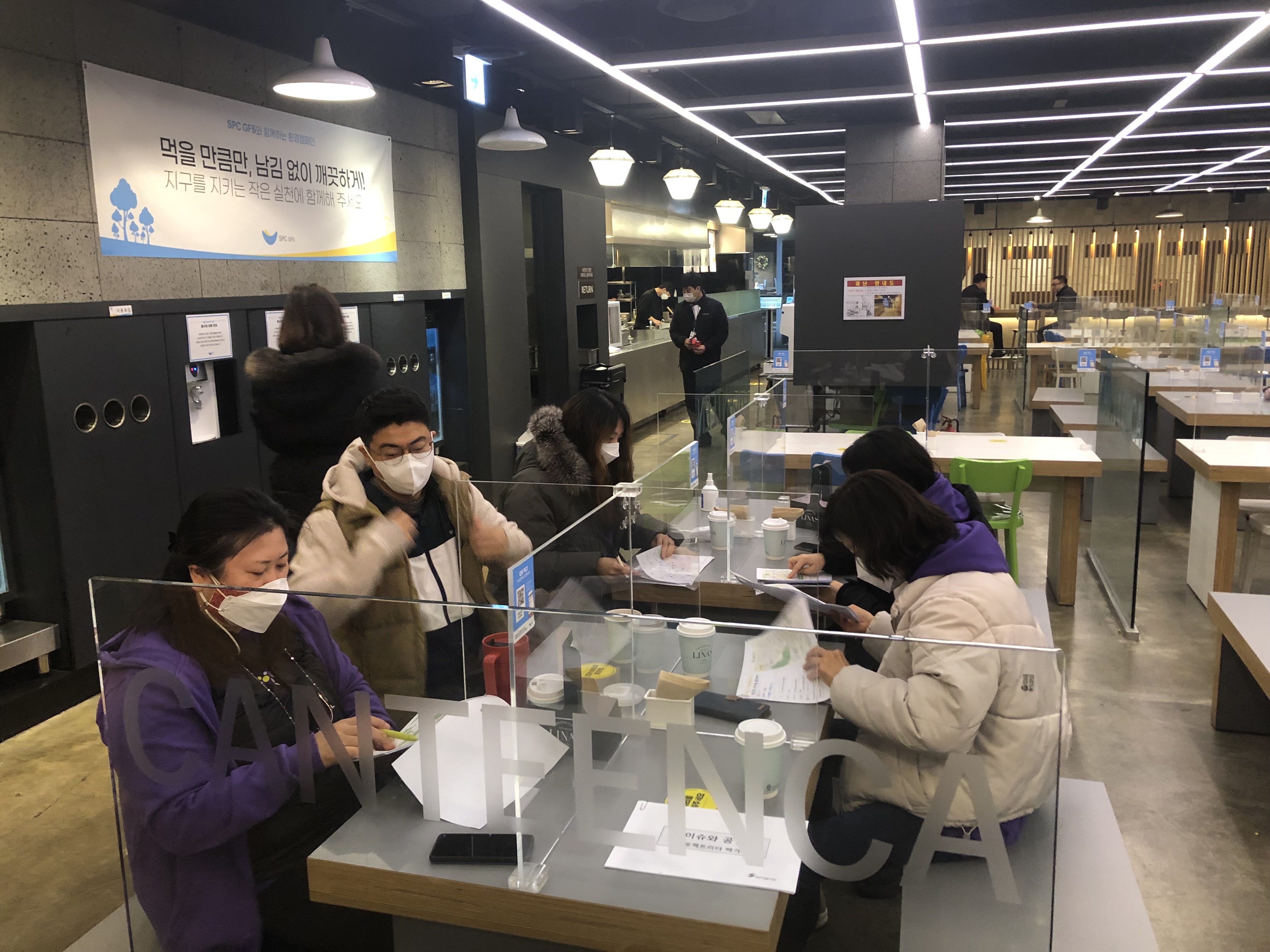 이렇게 한시간동안 쓰레기를 줍고, 다시 SPC사옥으로 돌아오셔서 조별 활동 소감을 나누는 시간을 가졌습니다.