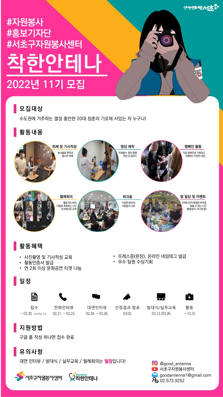 | [모집]2022년 서리풀 봉사학습 실천학교 멘토 (0) | 2022.03.21 |