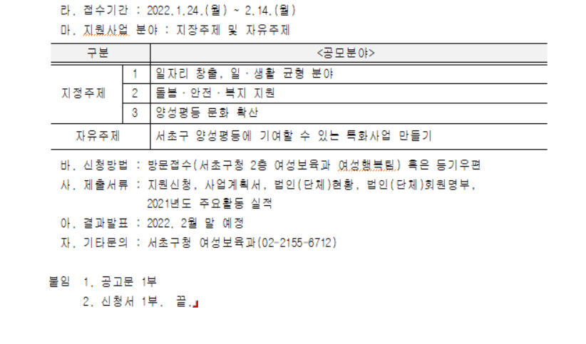 [공모]우면종합사회복지관 주민제안사업(~3/4까지) (0) | 2022.02.08 |