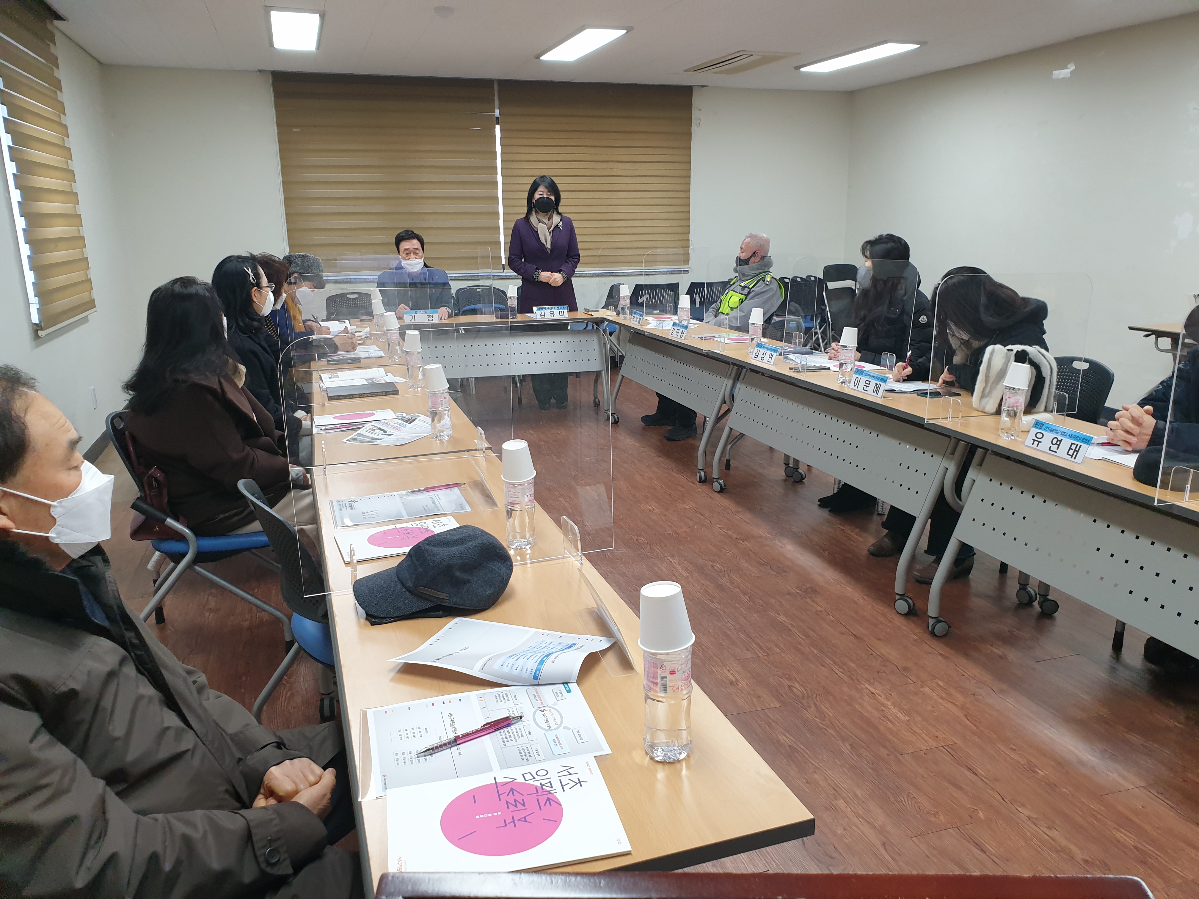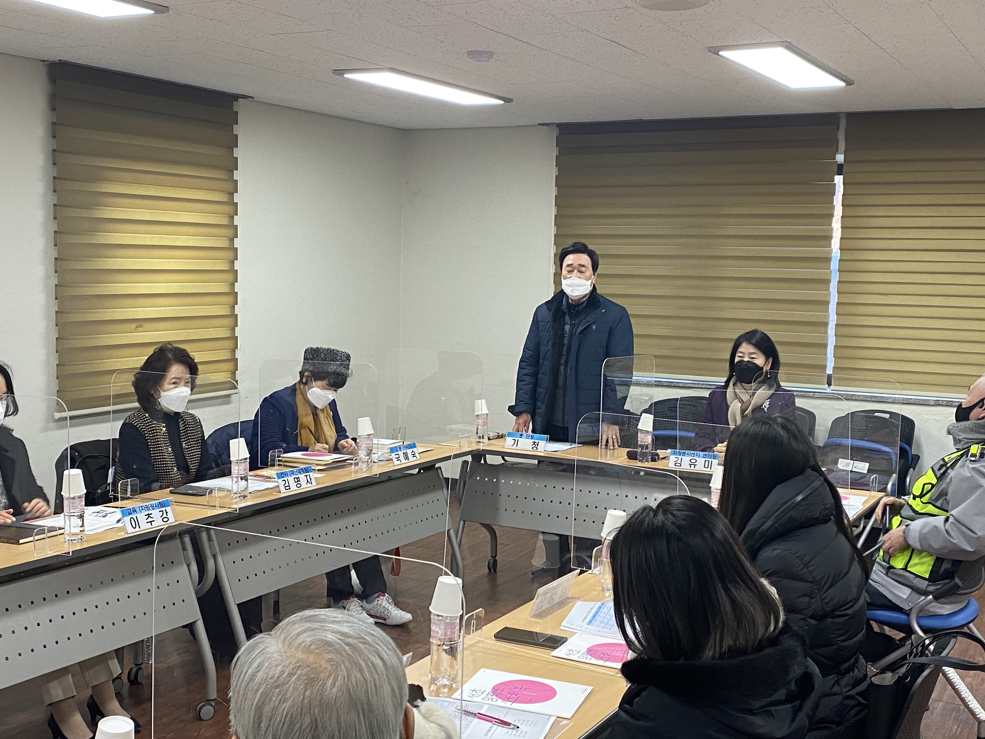 올해 첫 서초전문봉사단 임원진 간담회입니다. 먼저 기청 총단장님과 김유미 센터장님께서 인사 말씀을 하시고 계십니다.