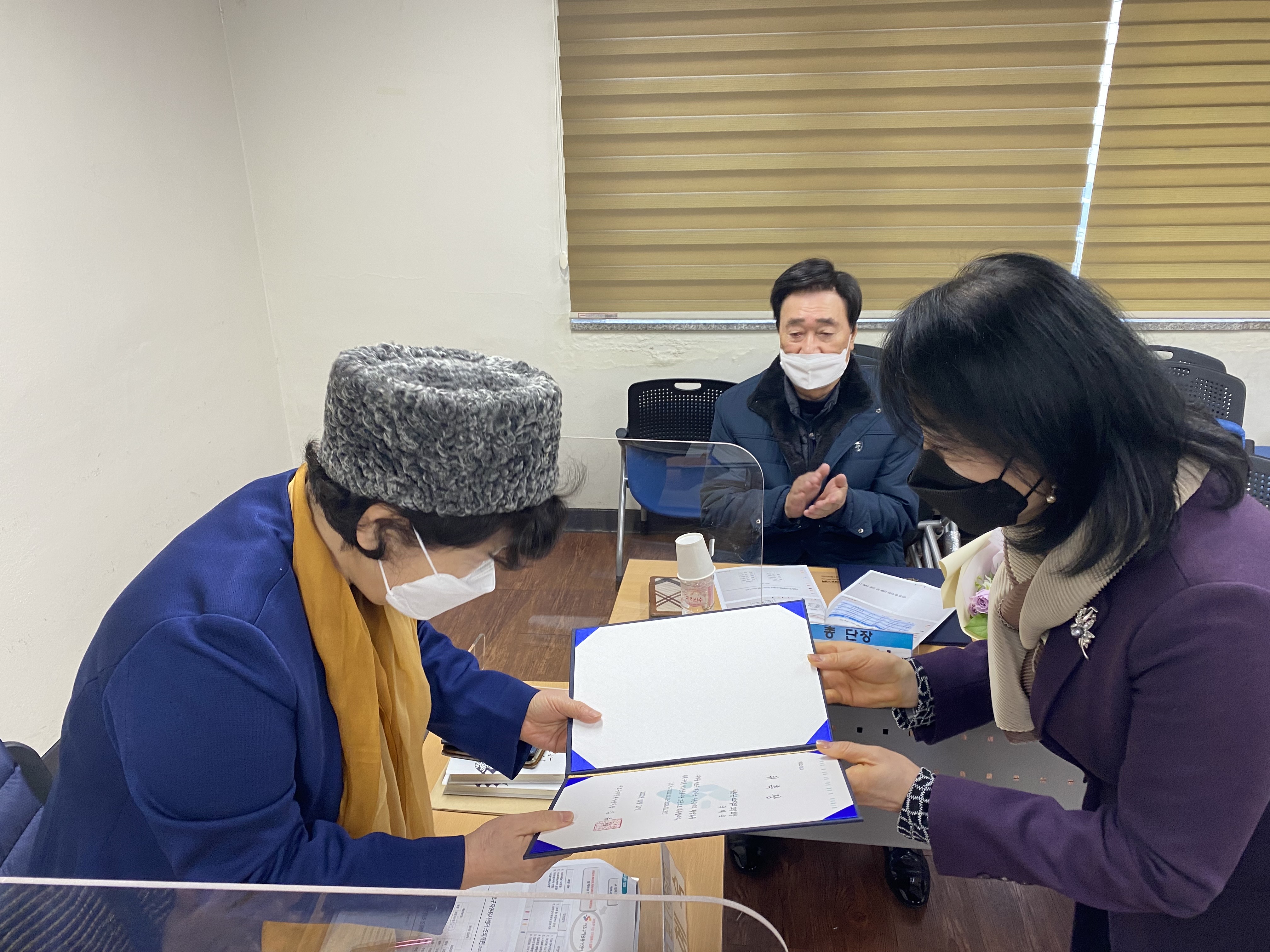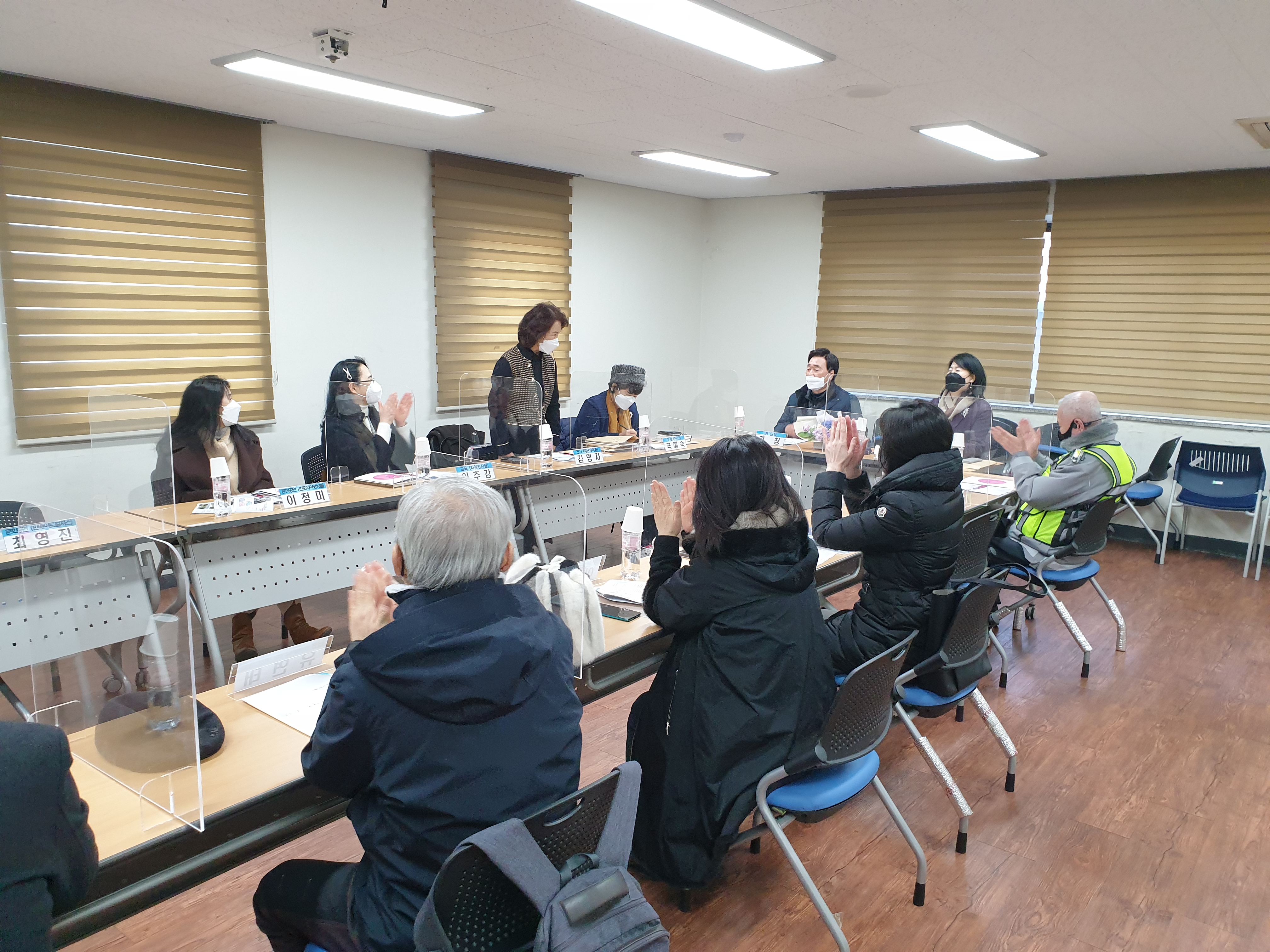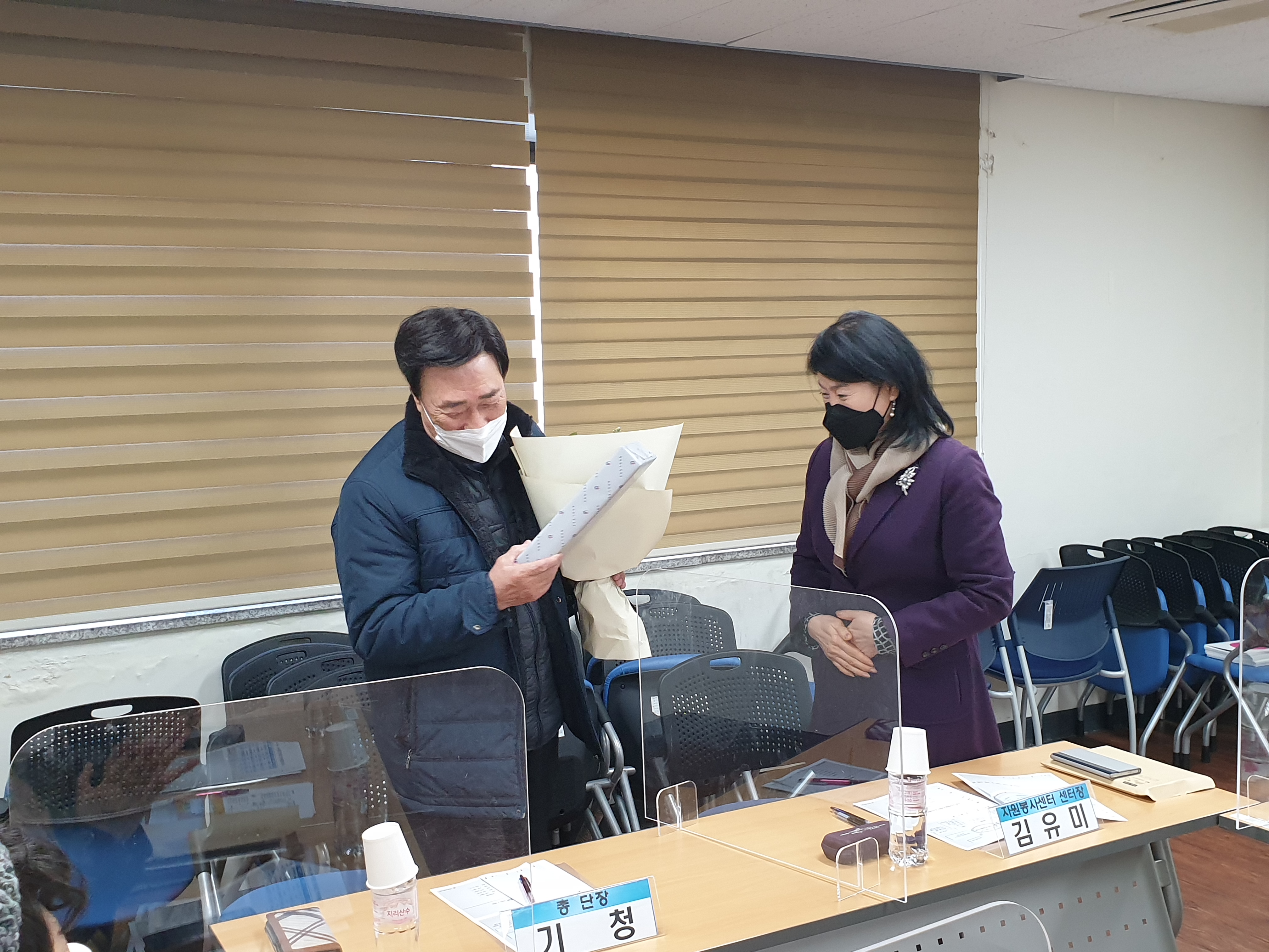 이어서 각 단장님들께서 인사를 나누고 계십니다. 2022년에 신규 임원진으로서 사)한국숲해설가협회 사회사업공헌단 신임 단장님이신 유연태 단장님과 국립국악원 토요국악동화 안내봉사단 김성연 단장님, 그리고 2월 말에 선출되는 콩알봉사단 신규 단장님이 새롭게 함께 해 주실 예정입니다. ^^