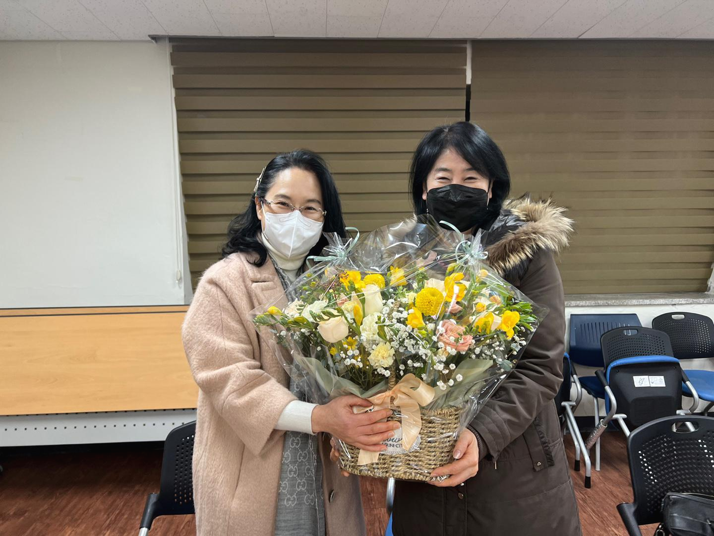 올 해 취임하신 김유미 센터장님을 축하하는 깜짝 꽃다발로 회의를 시작하게 되었는데요,