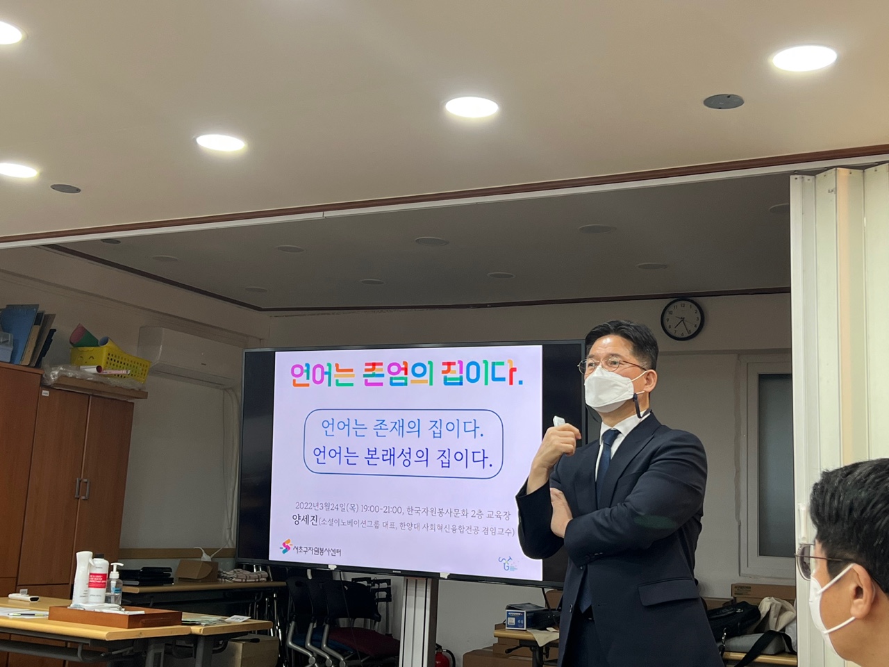 본격적인 교육에 앞서 이형진 주임의 여는말인 '일상 속 언어의 대한 고찰'로 시작했습니다.