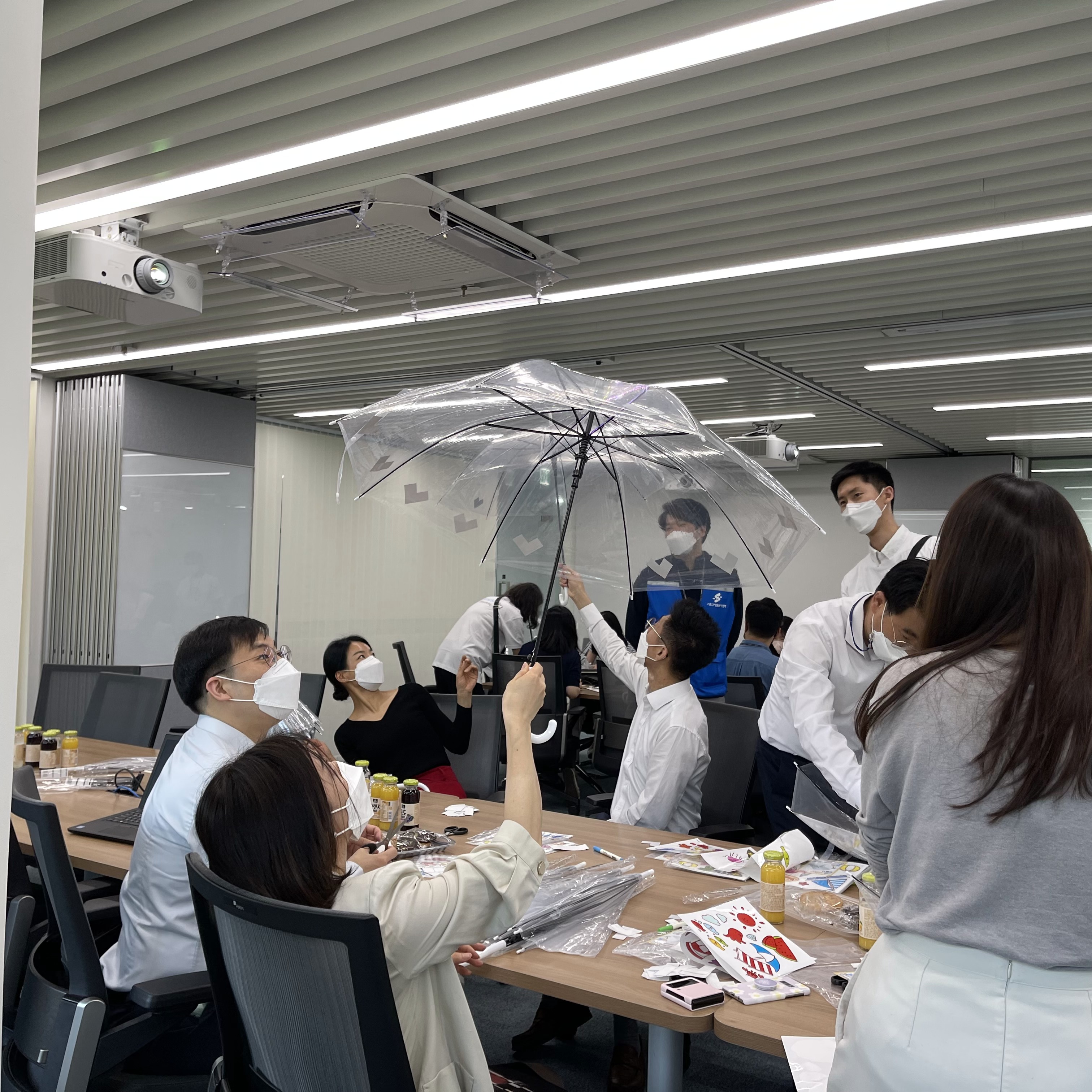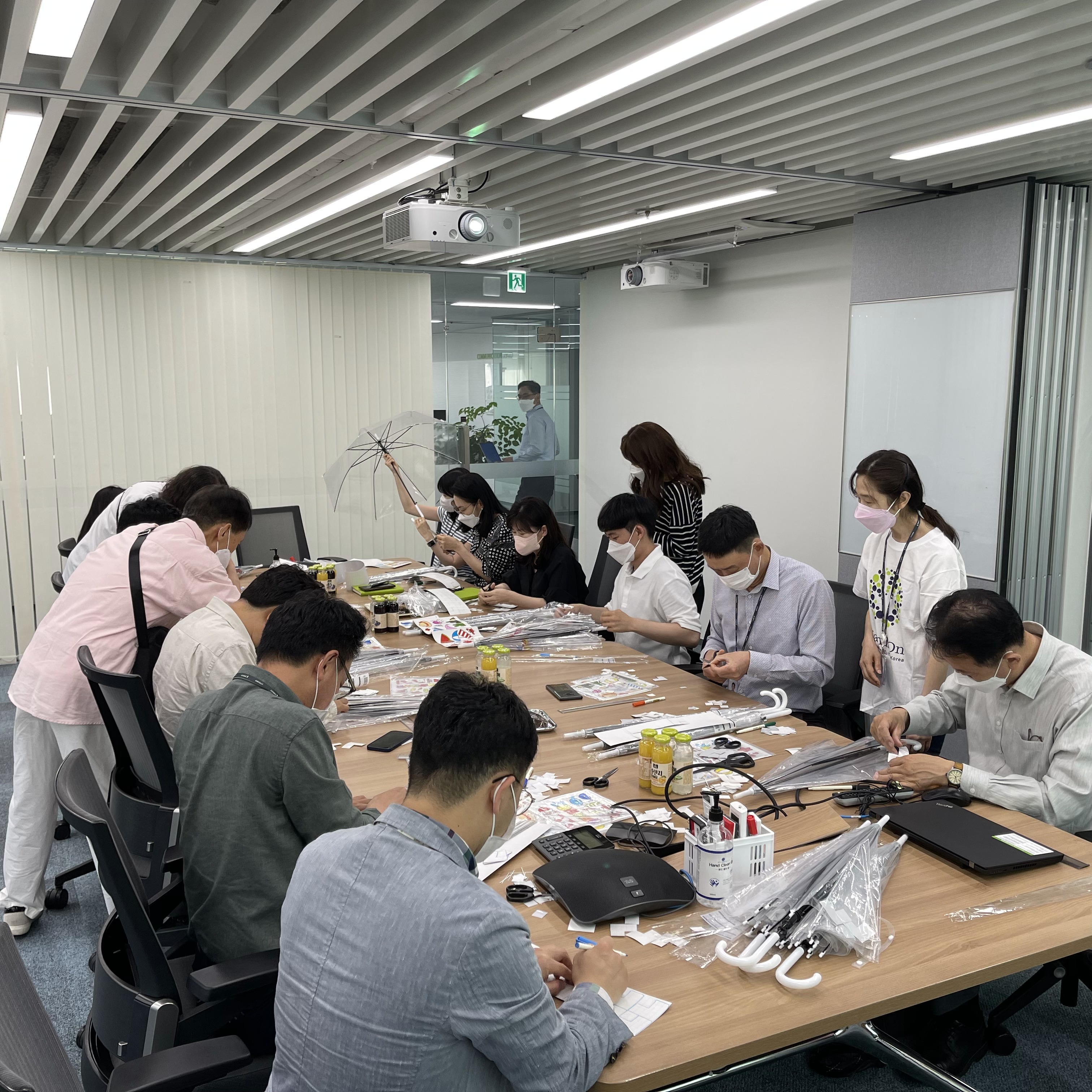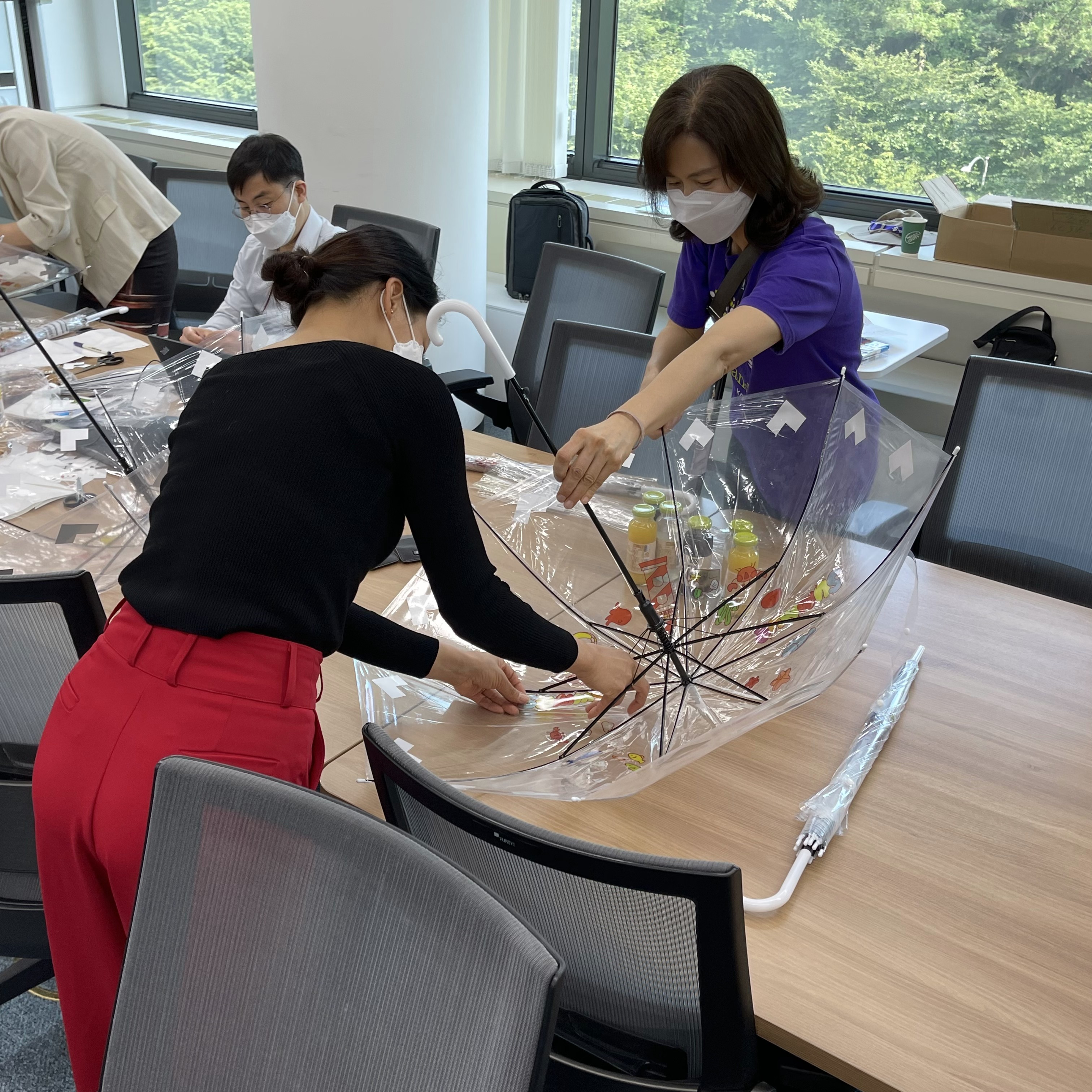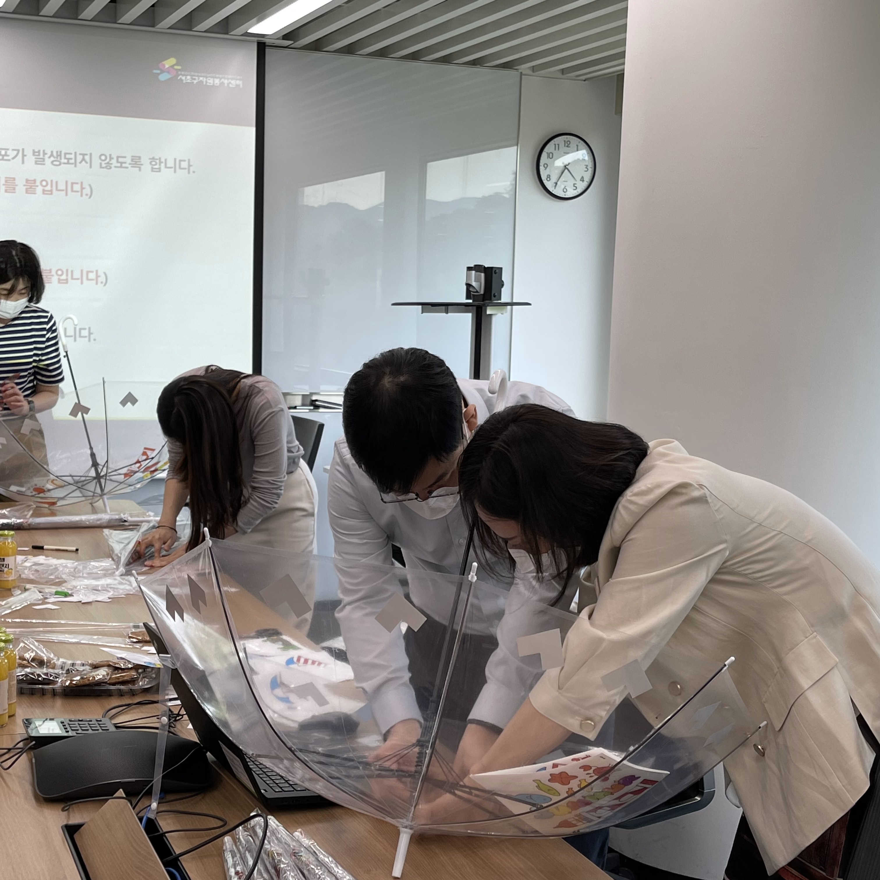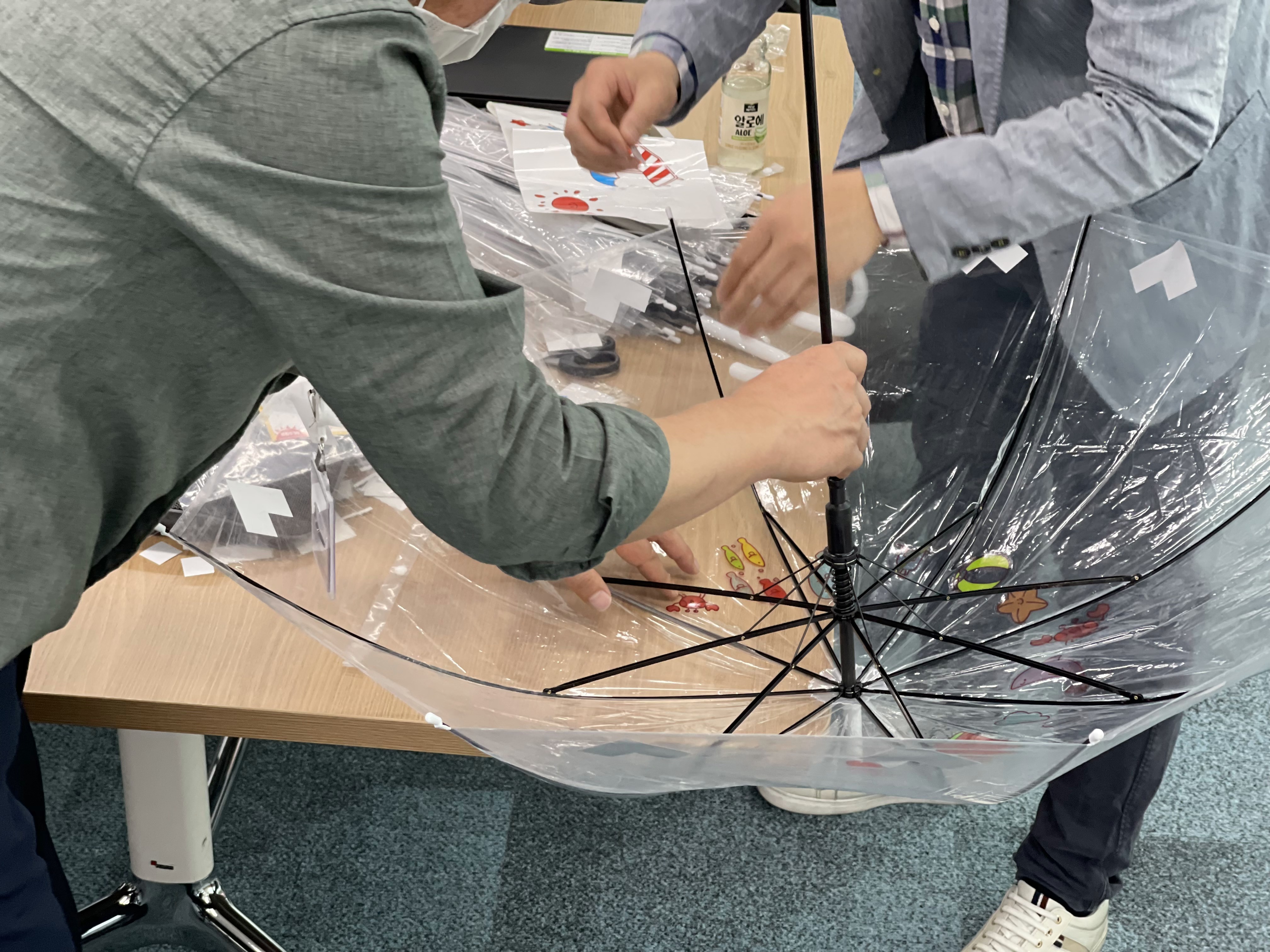 최종적으로 약 한시간에 걸쳐서 안전우산 만들기를 모두 완성을 하셨습니다.