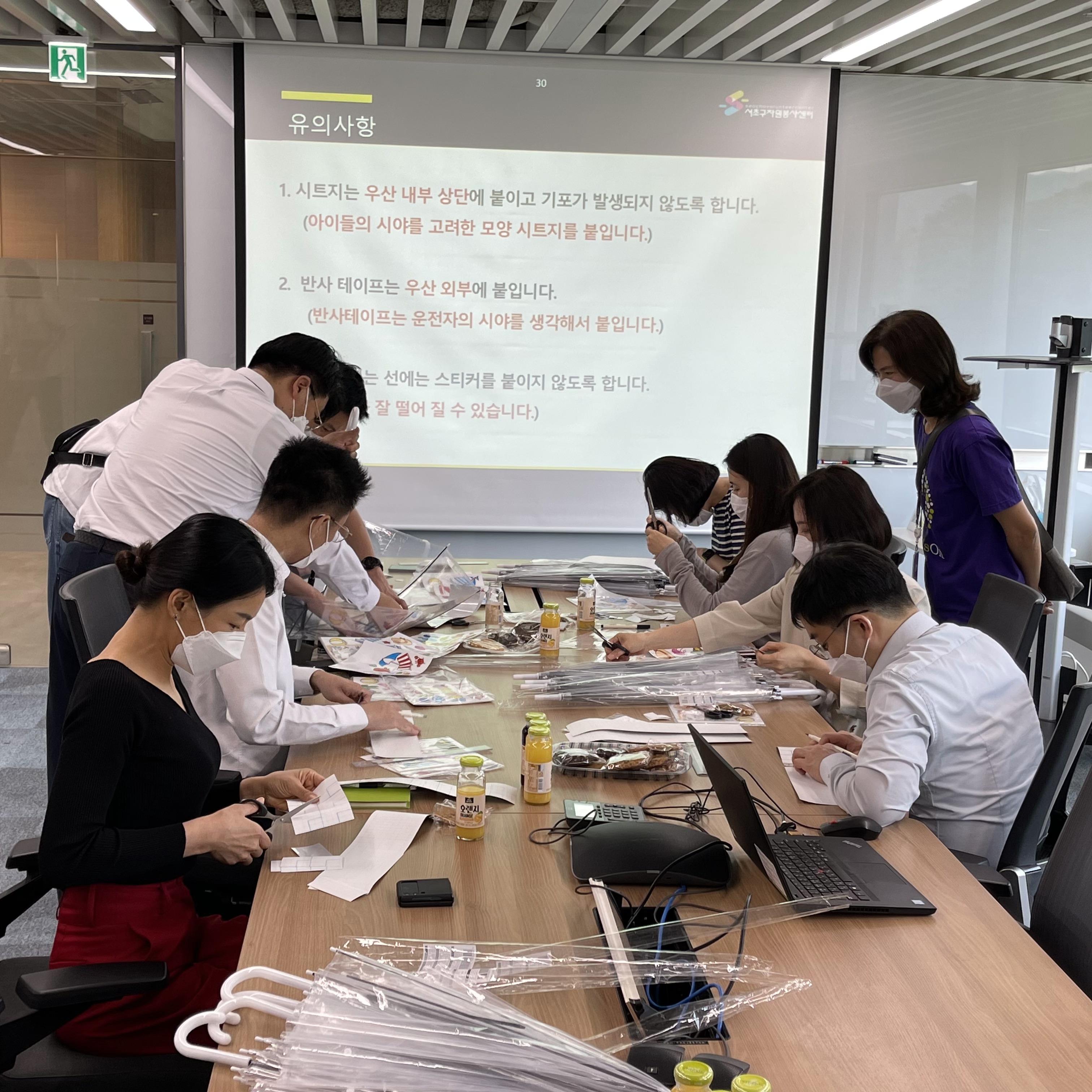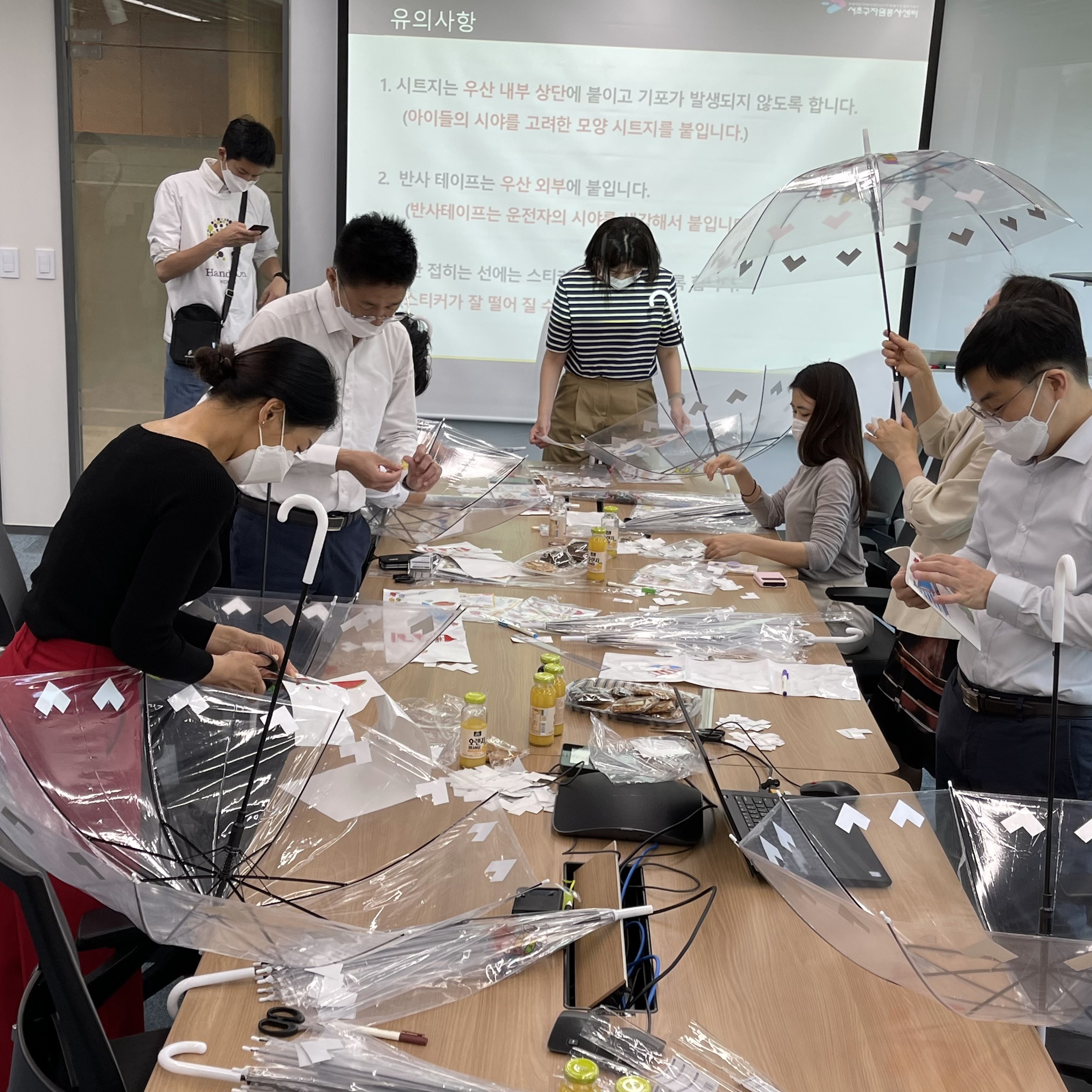 이후 안전우산 만들기의 필요성 및 만드는 방법에 대해 교육을 진행하셨습니다.