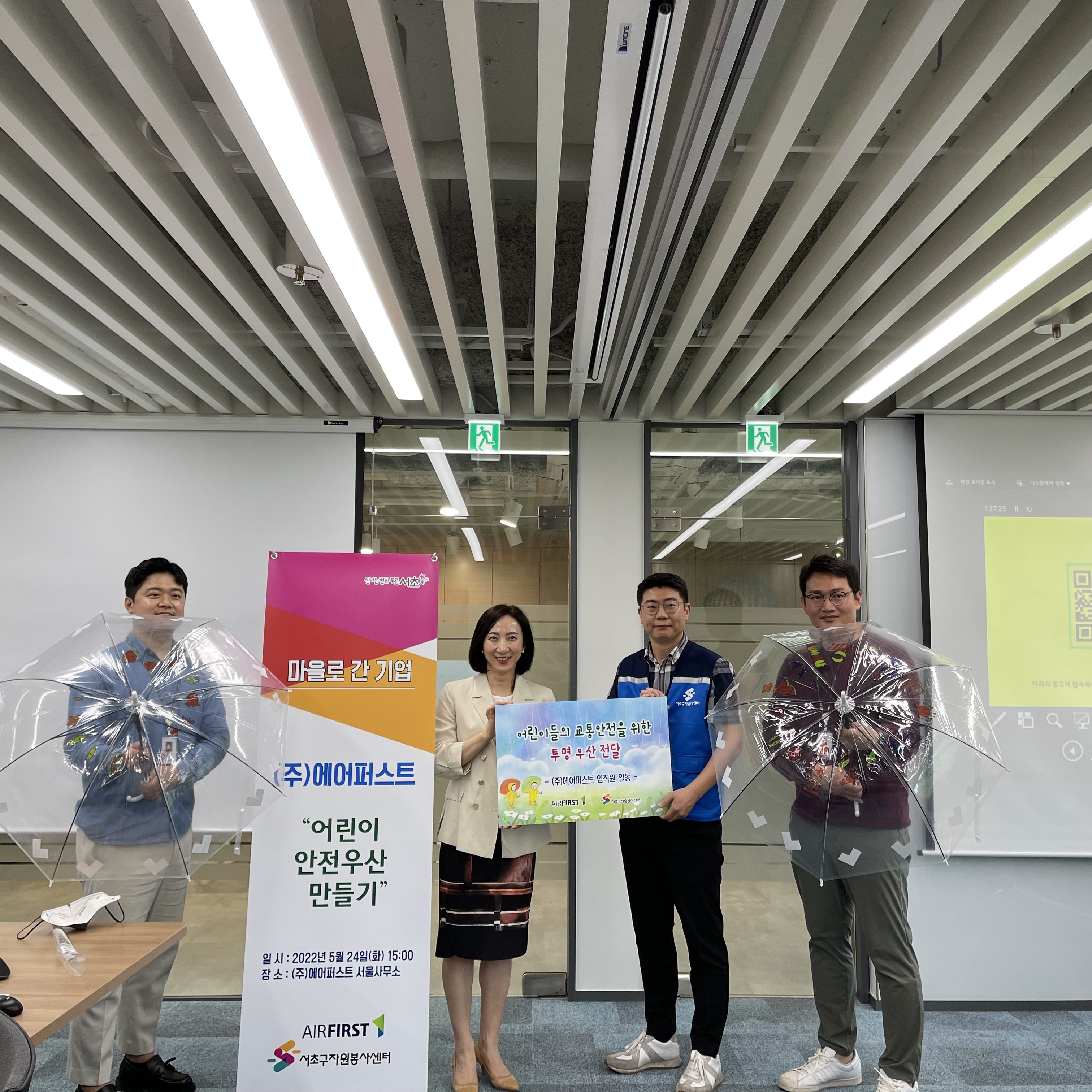 바로 에어퍼스트 기업의 '어린이 안전우산 만들기' 활동입니다.