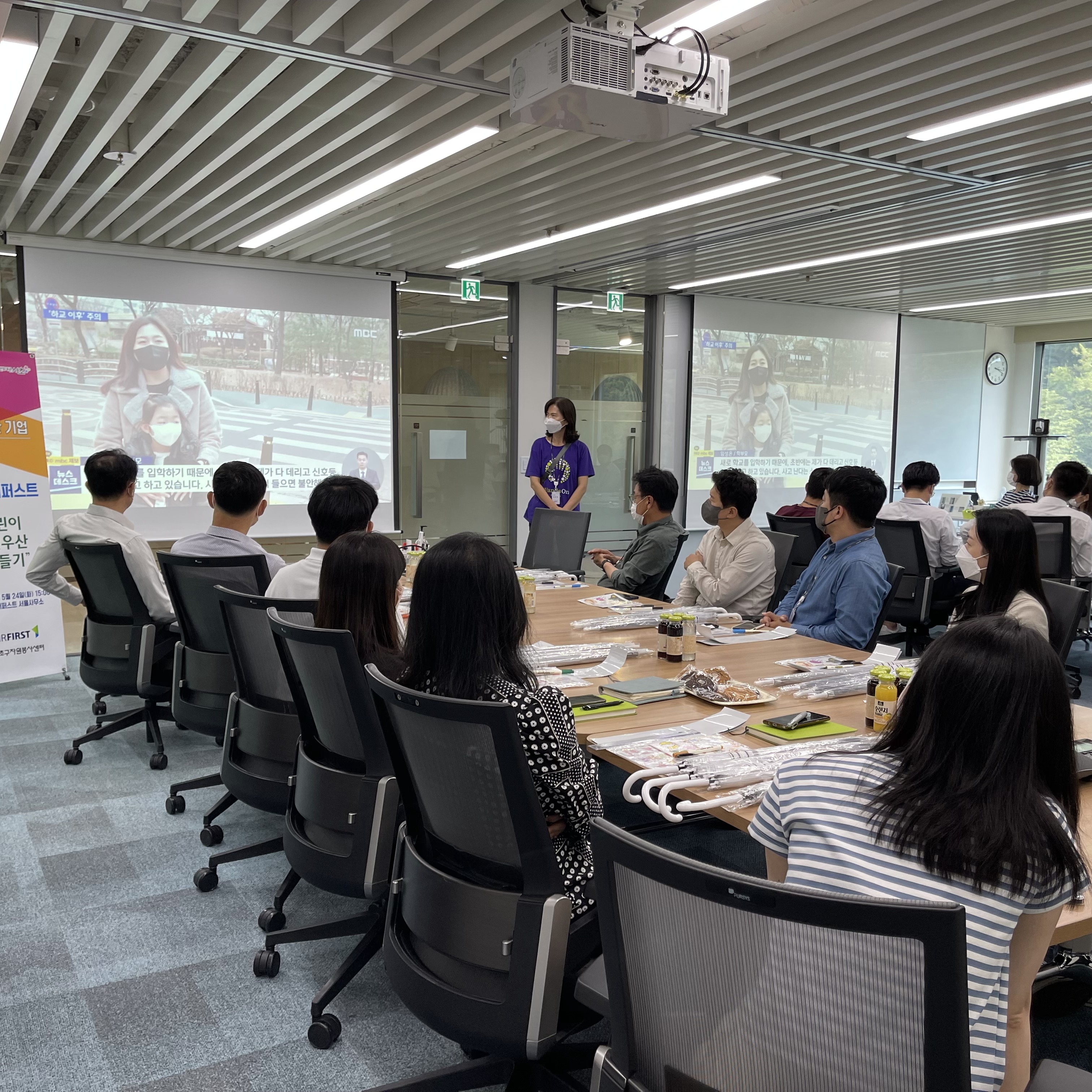 다음으로는 서초구 센터장 및 에어퍼스트 임원의 인사 및 소개 후 '이슈와 공감' 교육을 진행하였습니다.