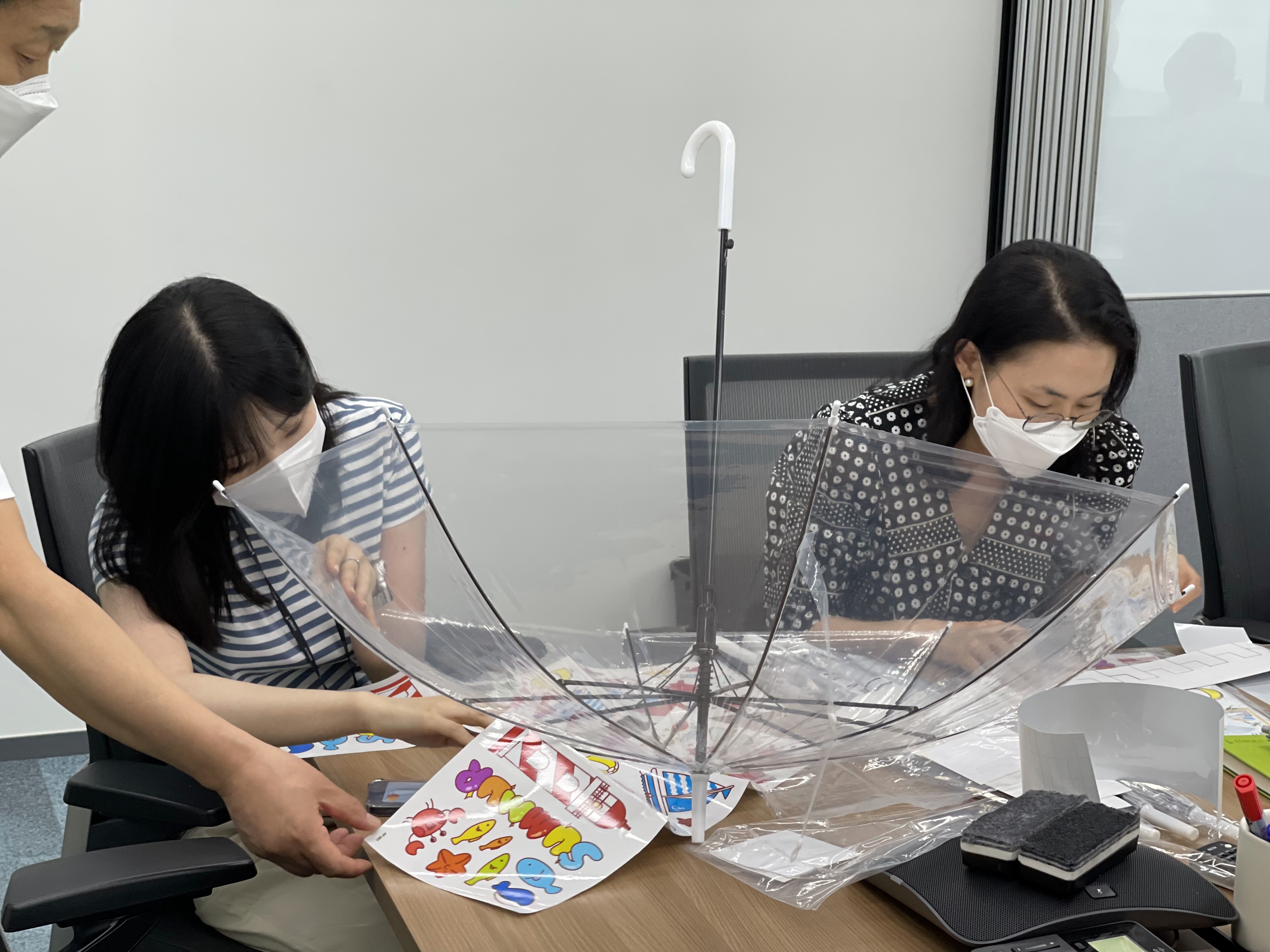 이후 곧바로 '어린이 안전우산 만들기' 활동을 시작하였는데요. 진행에는 프로젝트 리더들이 보조적으로
