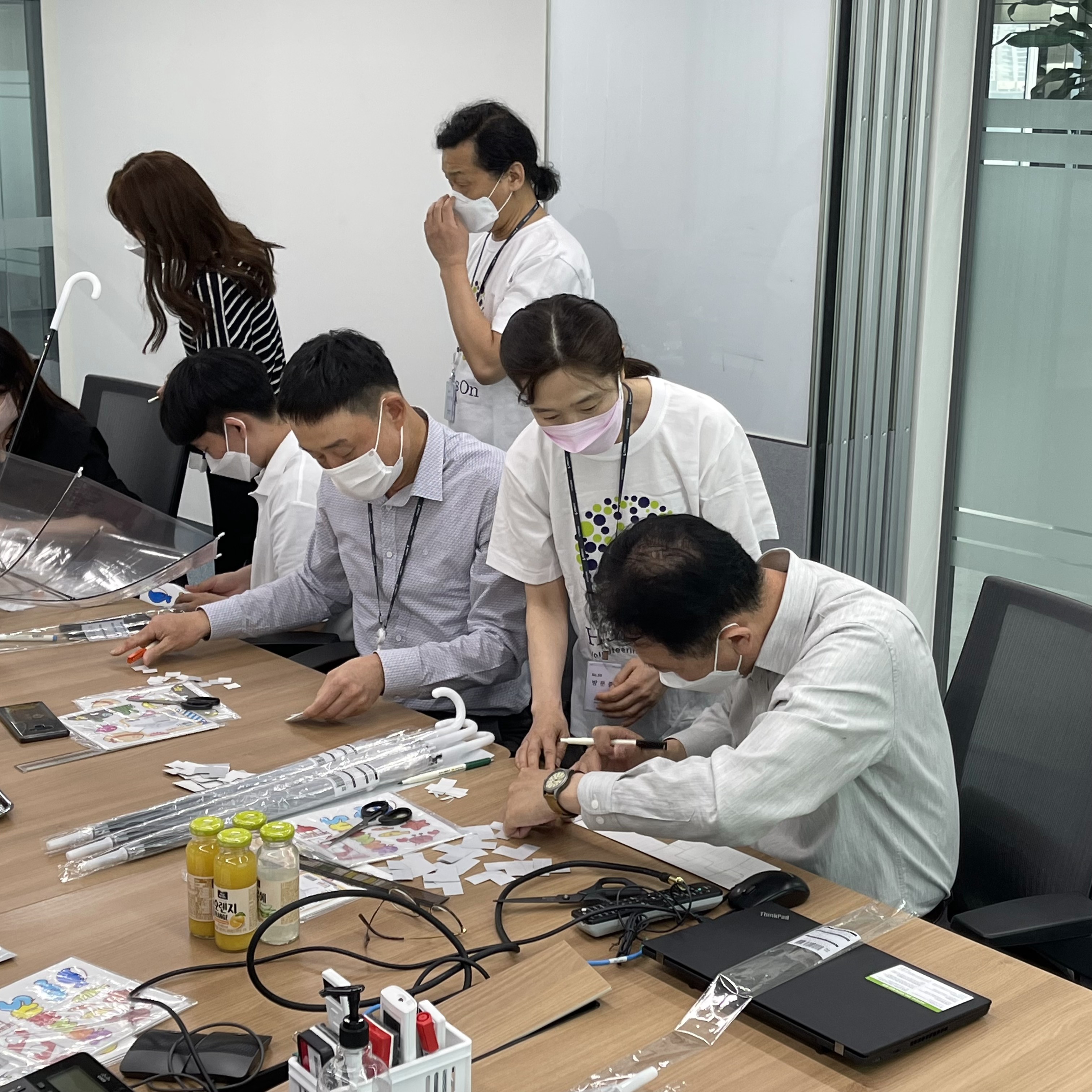 복잡한 작업은 아니지만 꼼꼼하게 노력하는 모습이 임직원분들이 봉사를 몸으로 실천하는게 의미가 있다고 느꼈습니다.