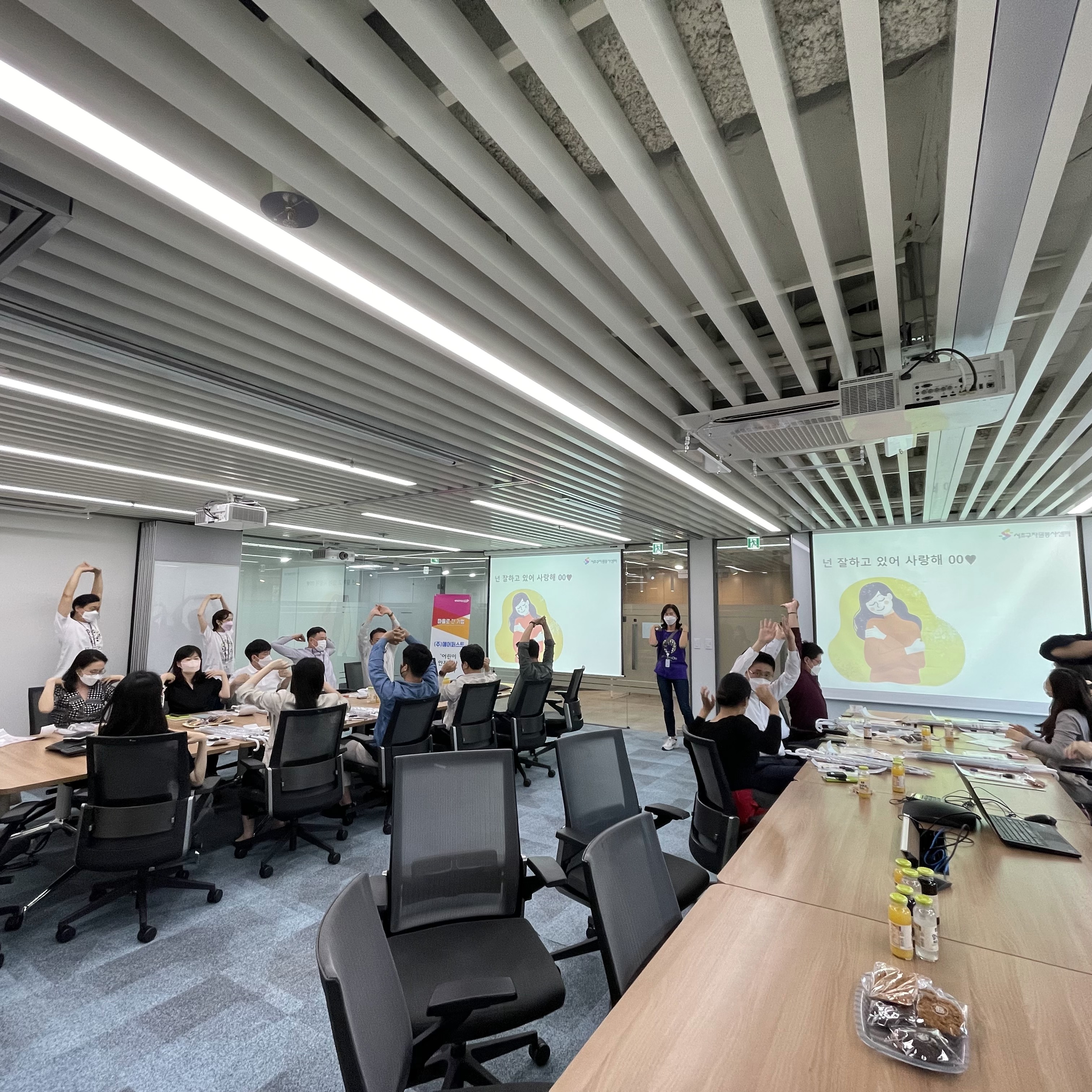 이러한 이슈와 공감 교육을 진행한 후에는, 간단한 몸을 푸는 활동을 진행하였고