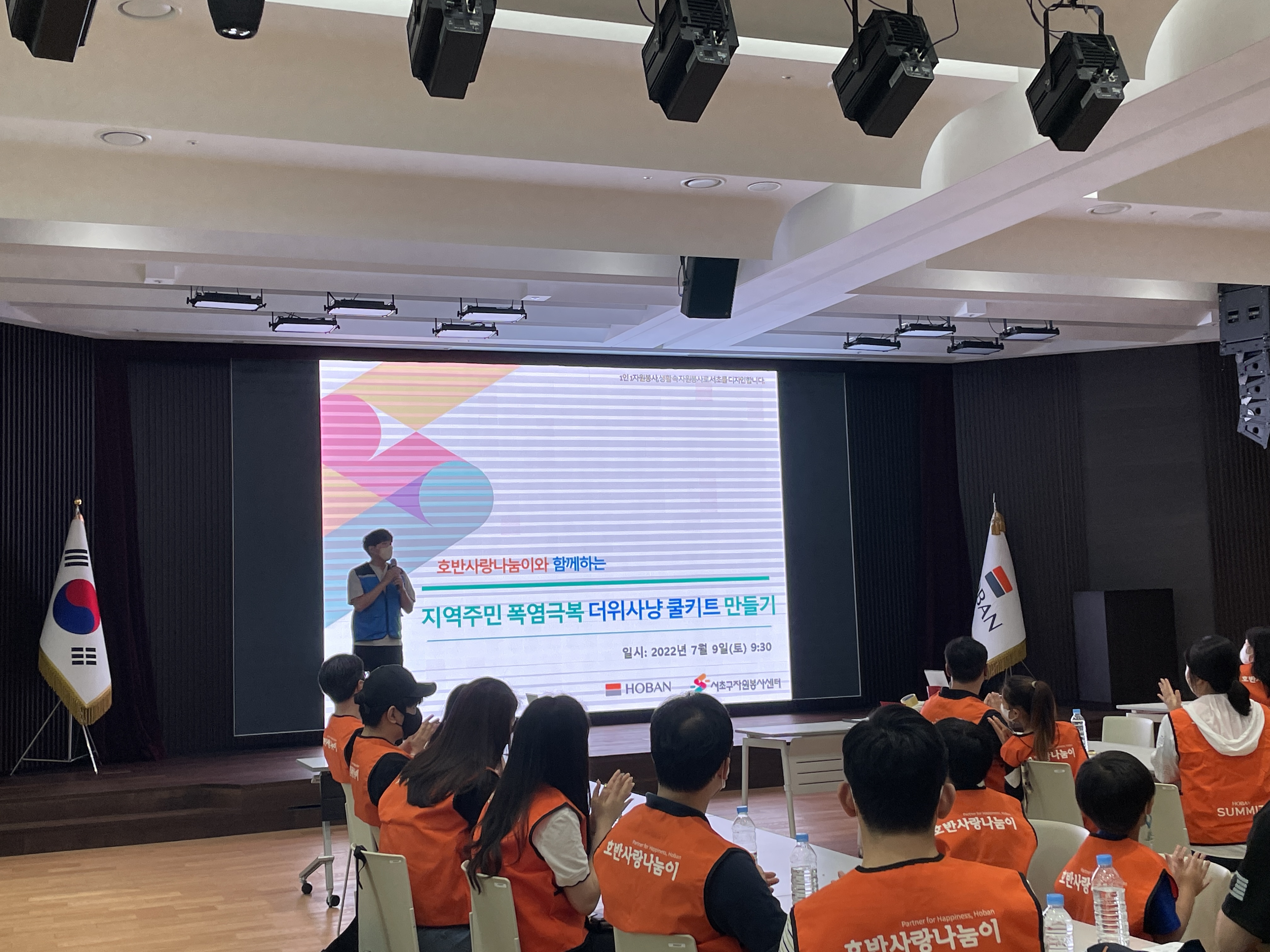 기업 임직원들이 본 활동을 이해하고, 동기부여를 가질 수 있도록 이슈와공감(시민교육) 진행되었는데요, 교육은 '폭염으로 도움이 필요한 이웃'을 주제로 진행되었습니다.