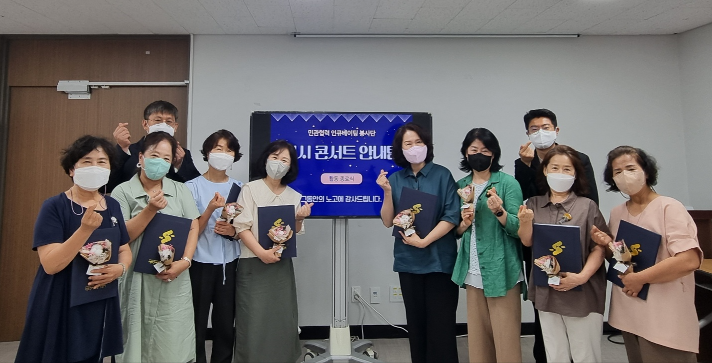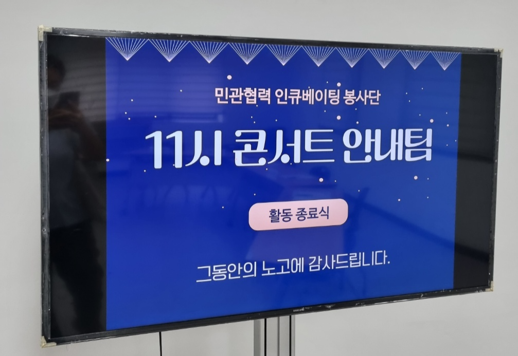비록 11시 콘서트 안내 봉사 활동이 종료되는 것은 슬프지만, 울지 않고 웃으면서 마무리할 수 있을 것 같습니다. 우리는 앞으로도 함께 할 것입니다. 항상 서초구에 웃음을 주는 '예당'이 되기를 기원합니다."