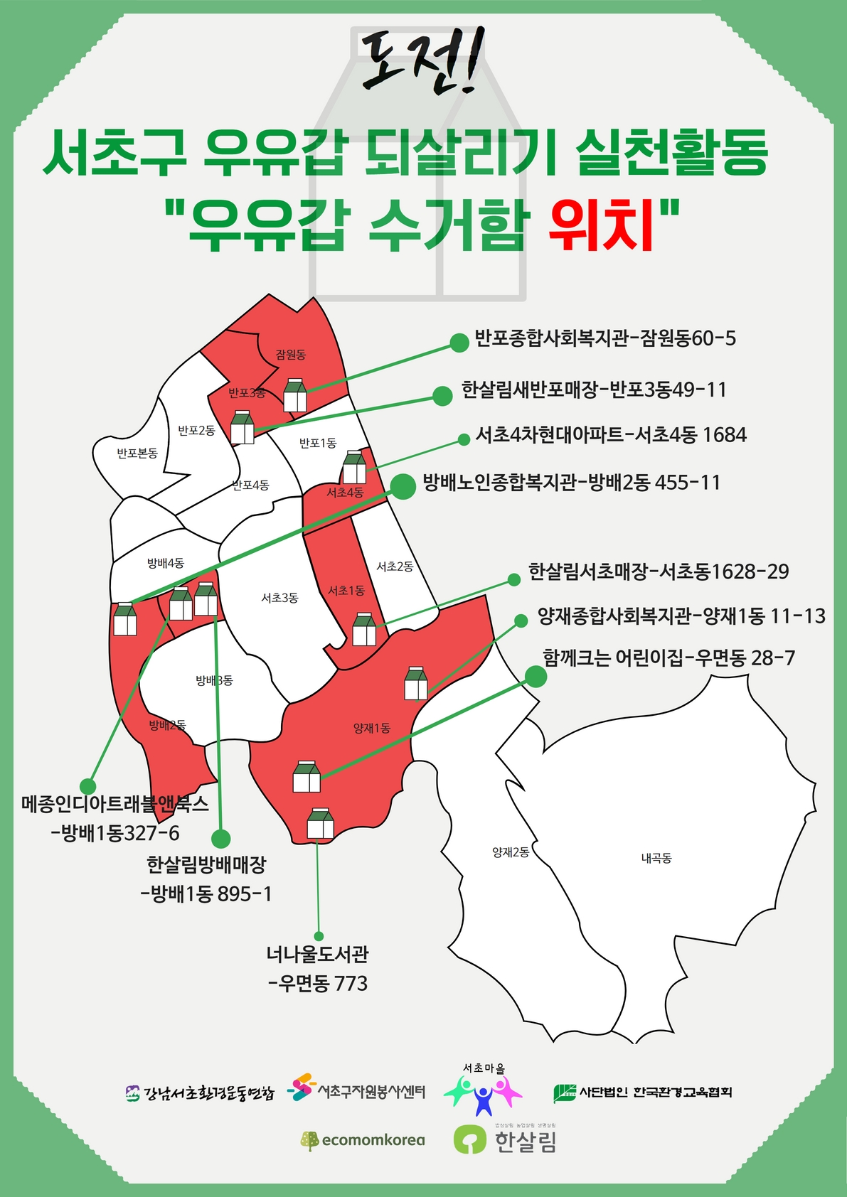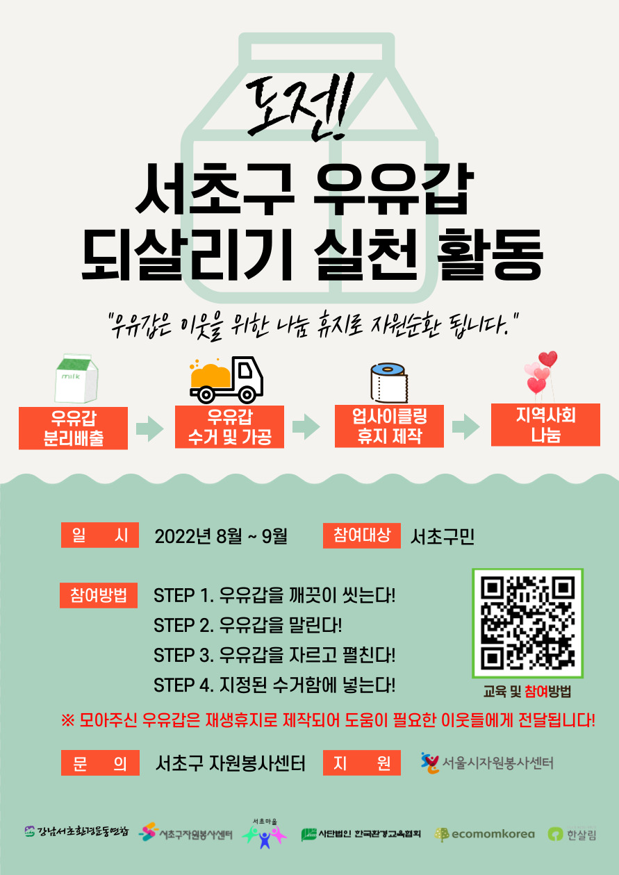 서초구자원봉사센터에서는 올바른 우유갑 분리배출을 장려하고, 서초구민들이 배출한 우유갑으로