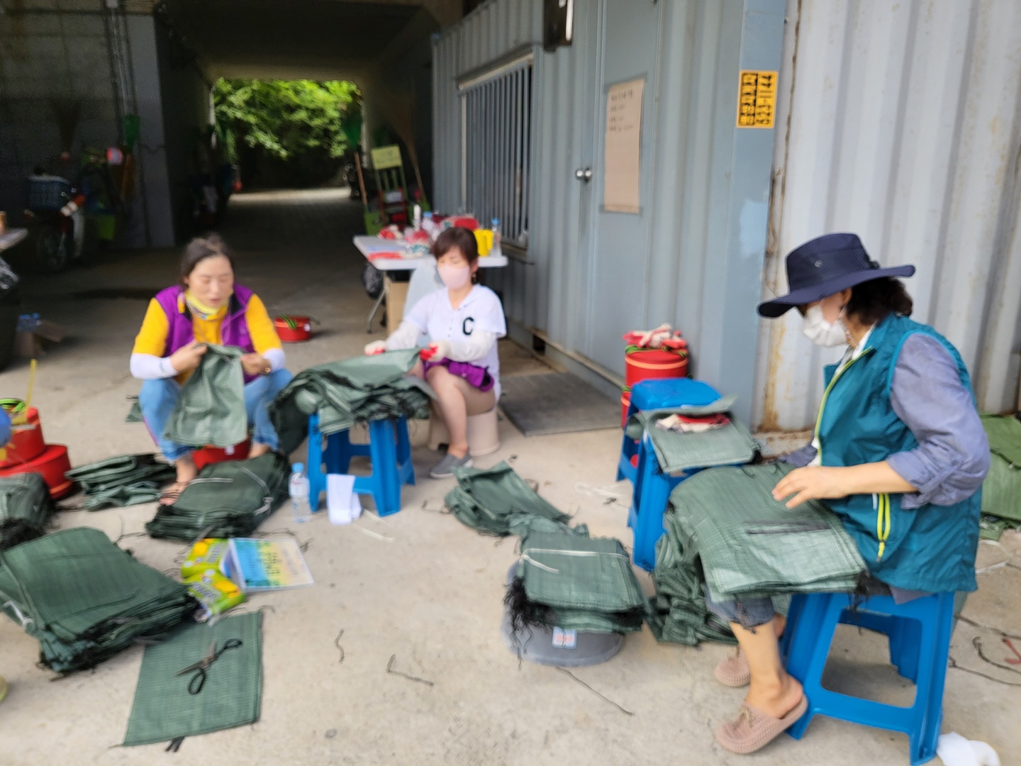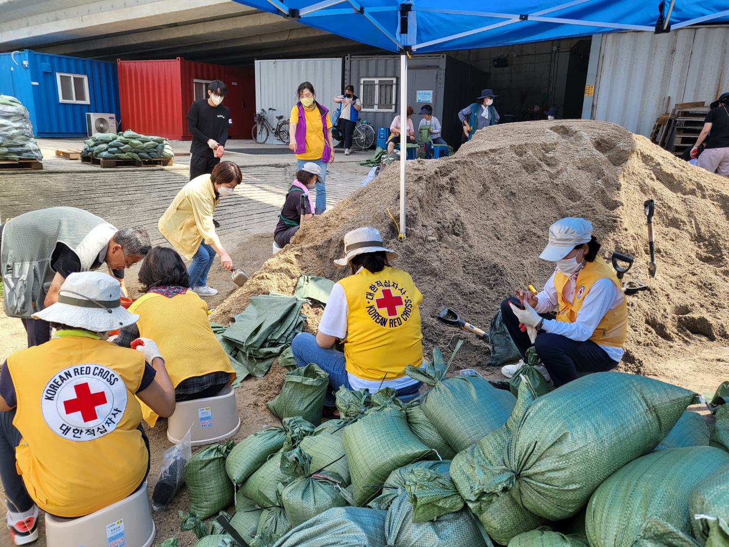 우리 자원봉사센터에서 중점적으로 물막이용 모래주머니 만들기에 집중해야할 때입니다.