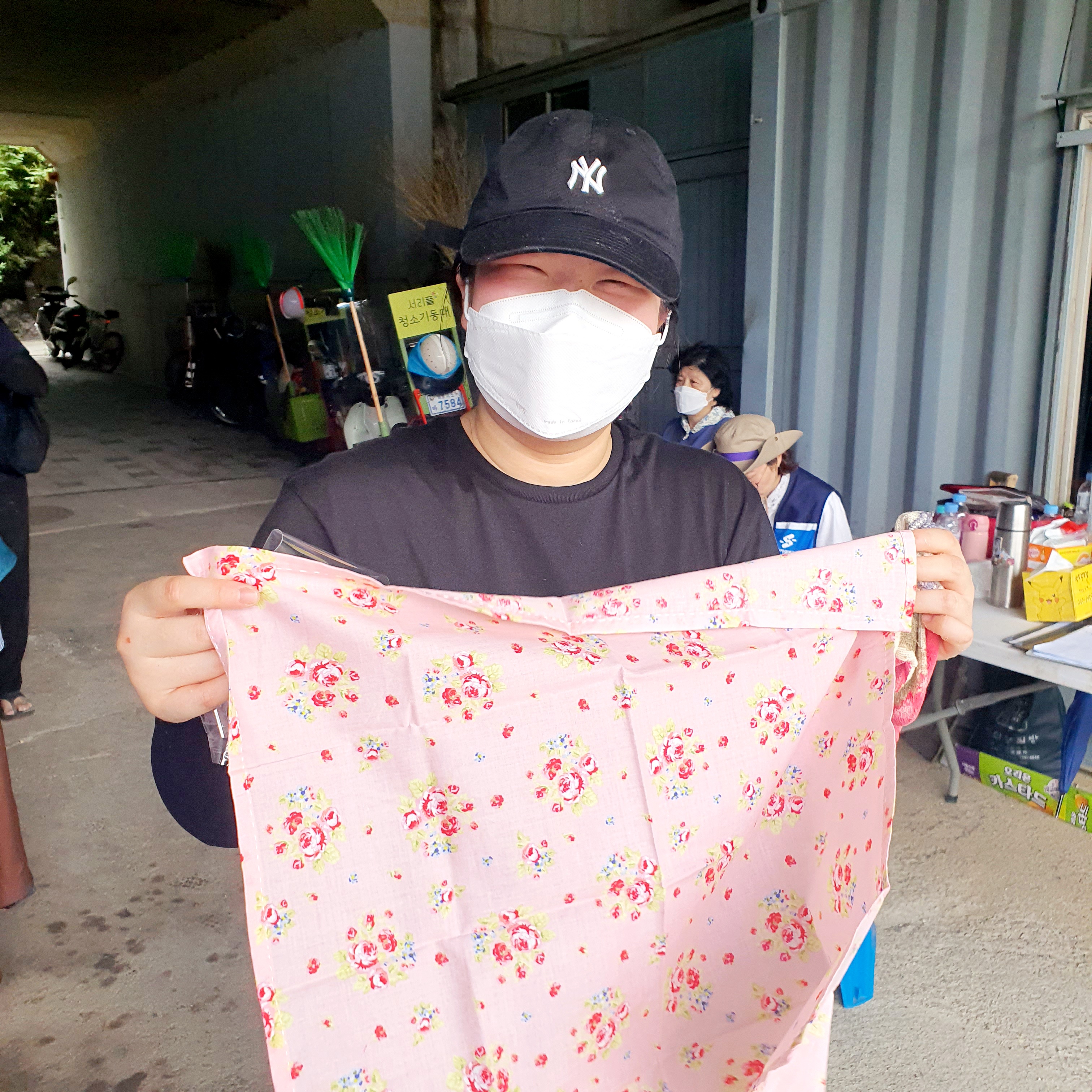 방배4동, 반포4동 자원봉사캠프에서 손바느질로 만든 손수건도 가져오셔서