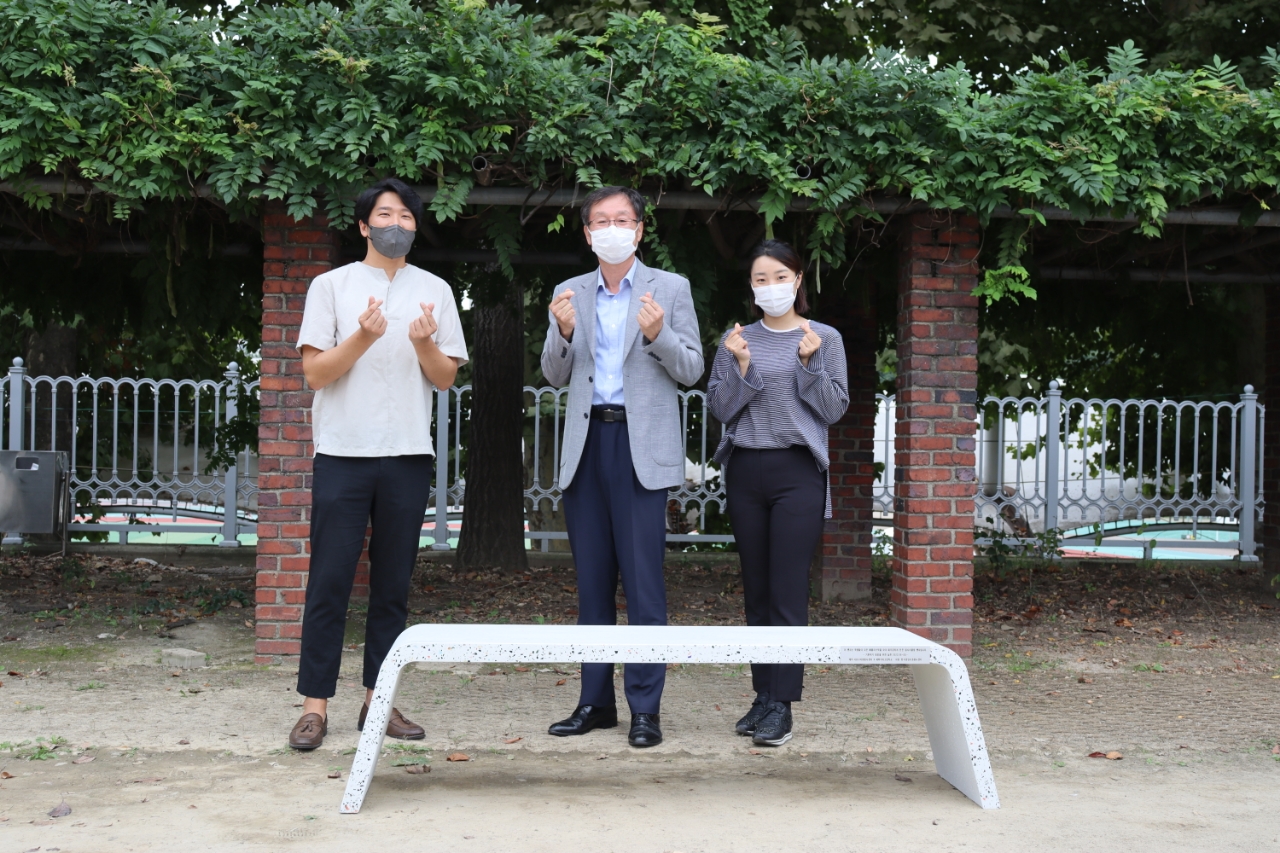 이렇게 설치된 쌍둥이 벤치는 교대부설초 학생들에게 편안한 공간을 제공할 예정입니다.