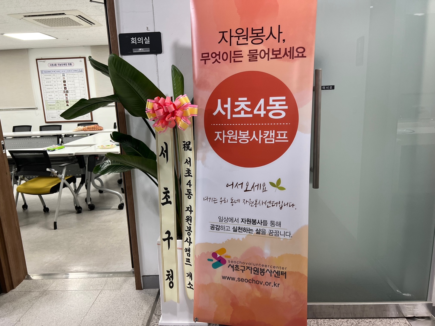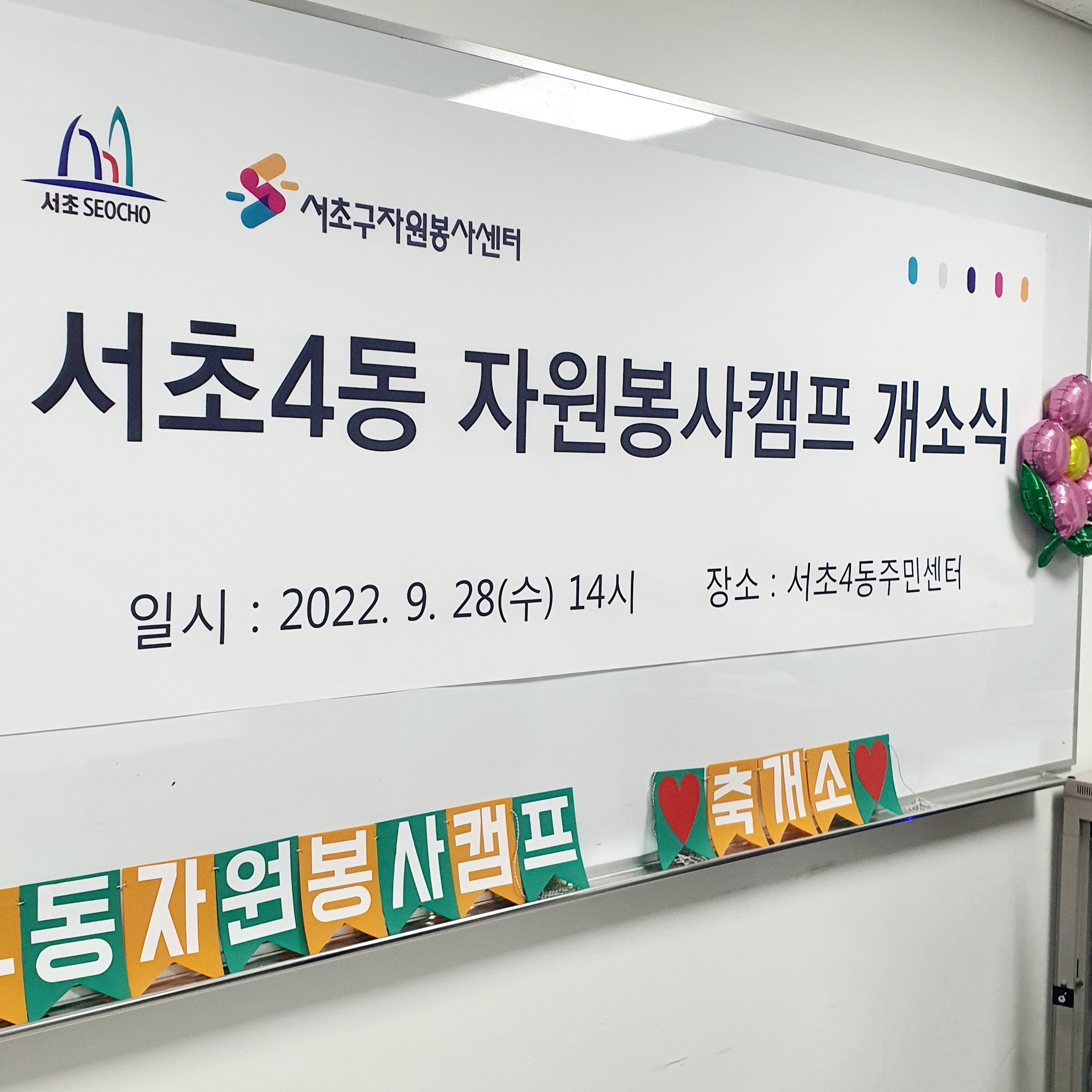오늘은 드디어 18개 동 자원봉사캠프의 마지막 마침표를 찍어줄 '서초4동 자원봉사캠프' 개소식이 진행되었습니다.