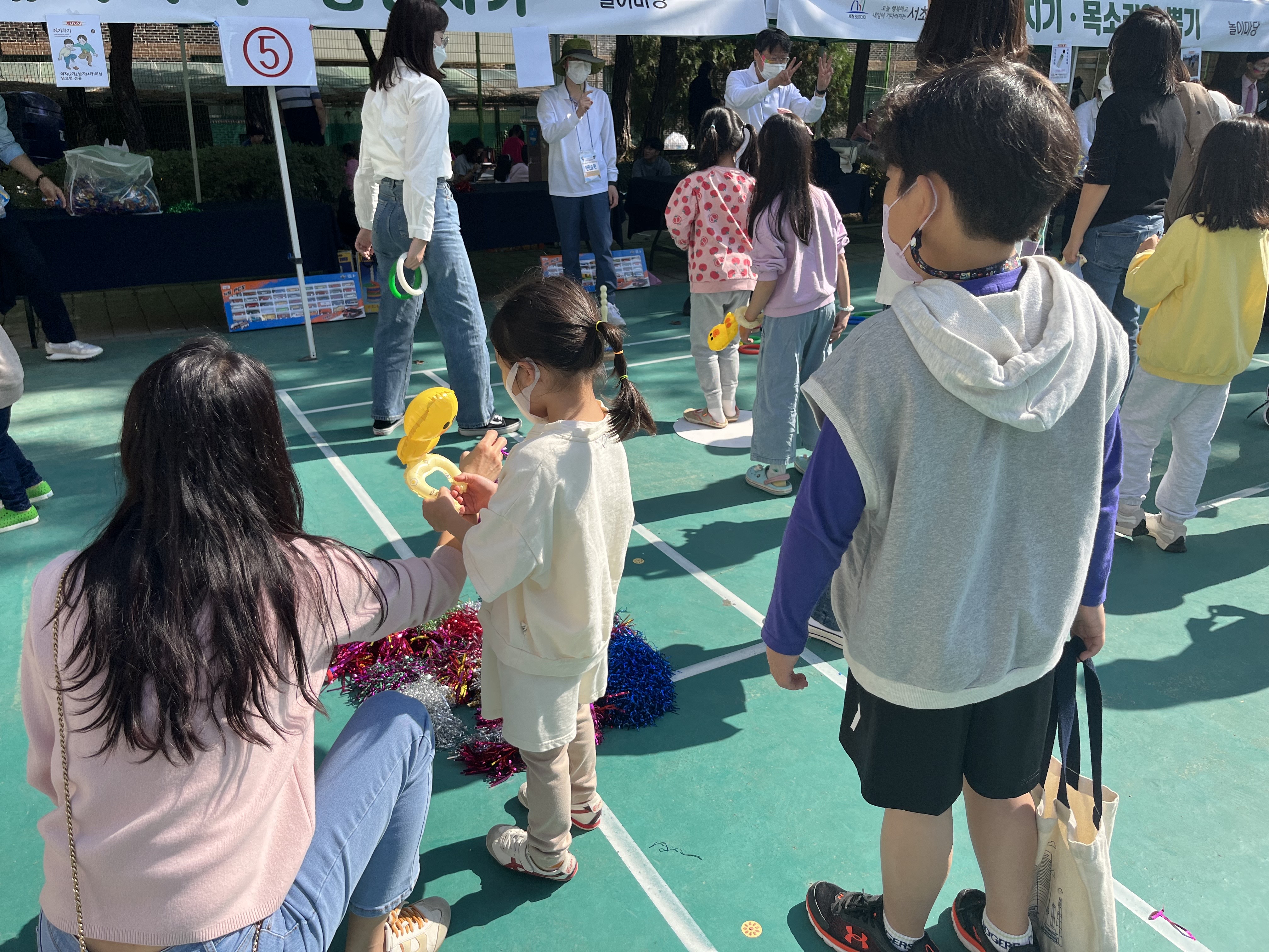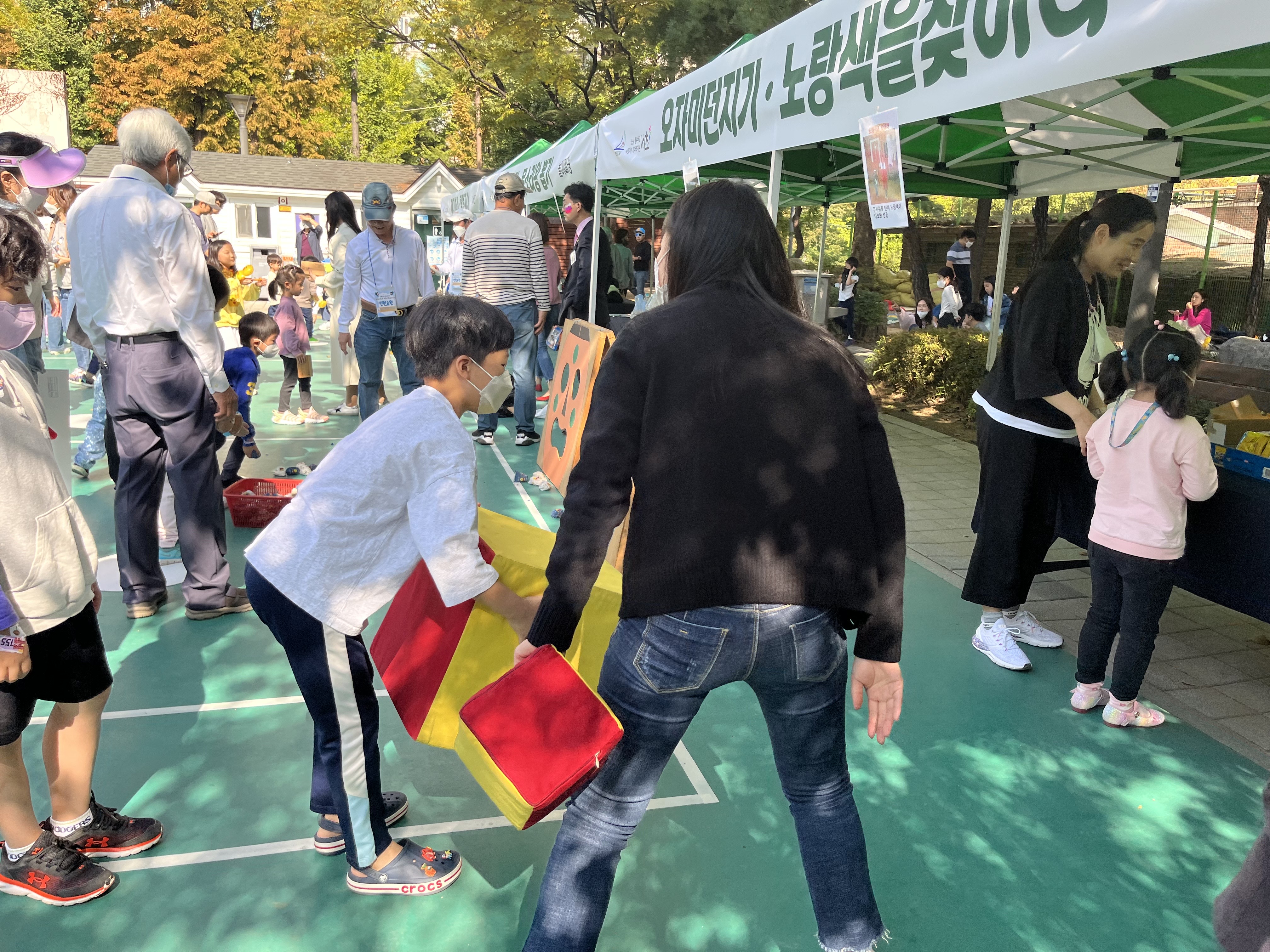 무대 주변 부스에는 정말 많은 컨텐츠가 준비되어 있었는데요. 페이스 페인팅부터 비석치기, 목소리왕 뽑기, 오자미던지기, 노랑색을 찾아라 등등 다양한 어린이 프로그램으로 가득했습니다.