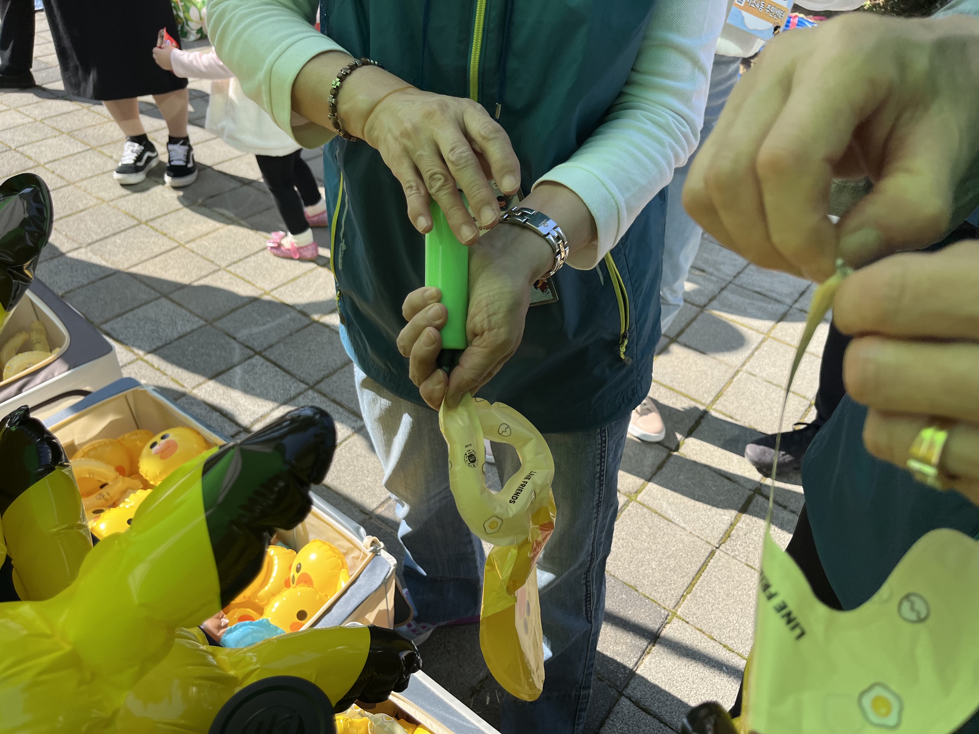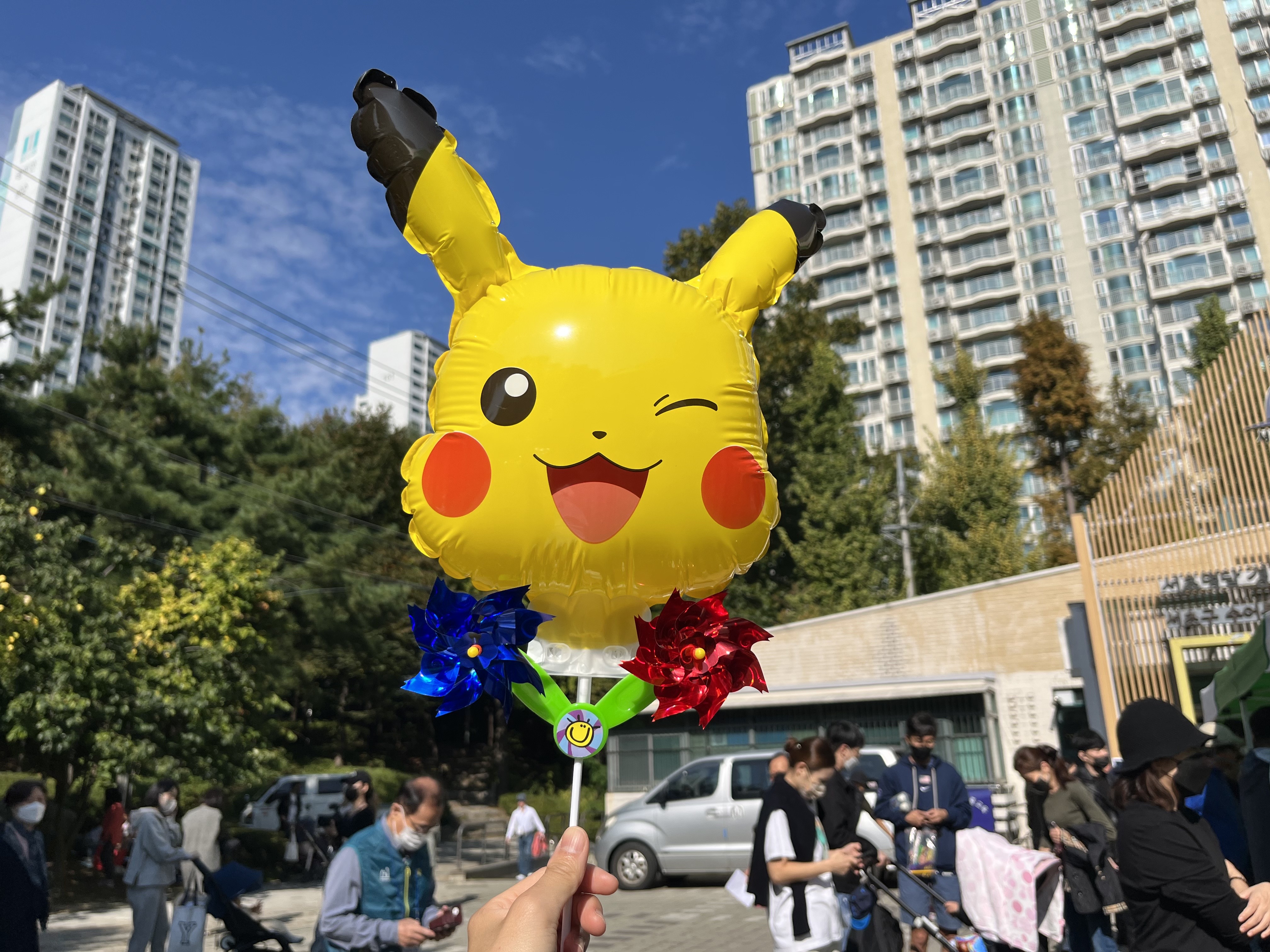 아직 시작도 안했는데 끝이 보이지 않는 행렬이 가득한데요. 피카츄 모양의 풍선과 라인프렌즈 캐릭터 풍선 팔찌의 인기로,