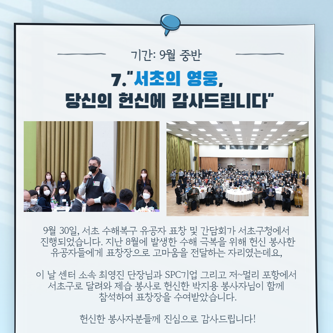| [서초재능허브]서초전문봉사단의 창단 15주년 기념식! (0) | 2022.10.25 |
