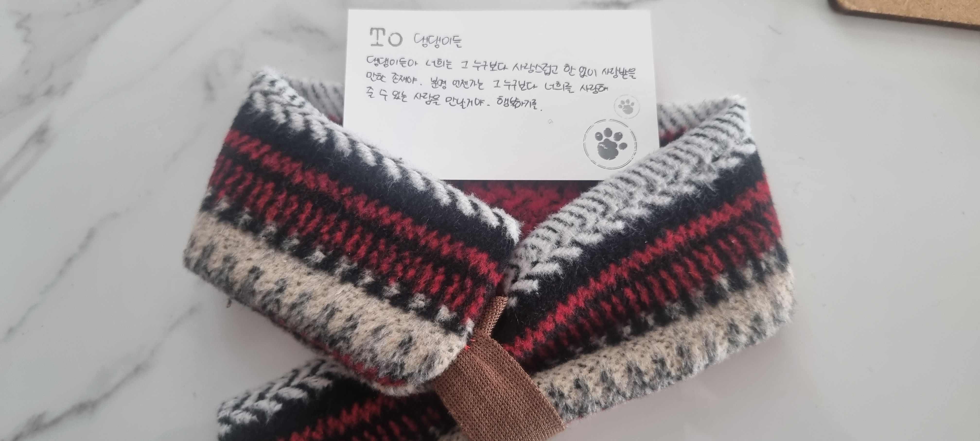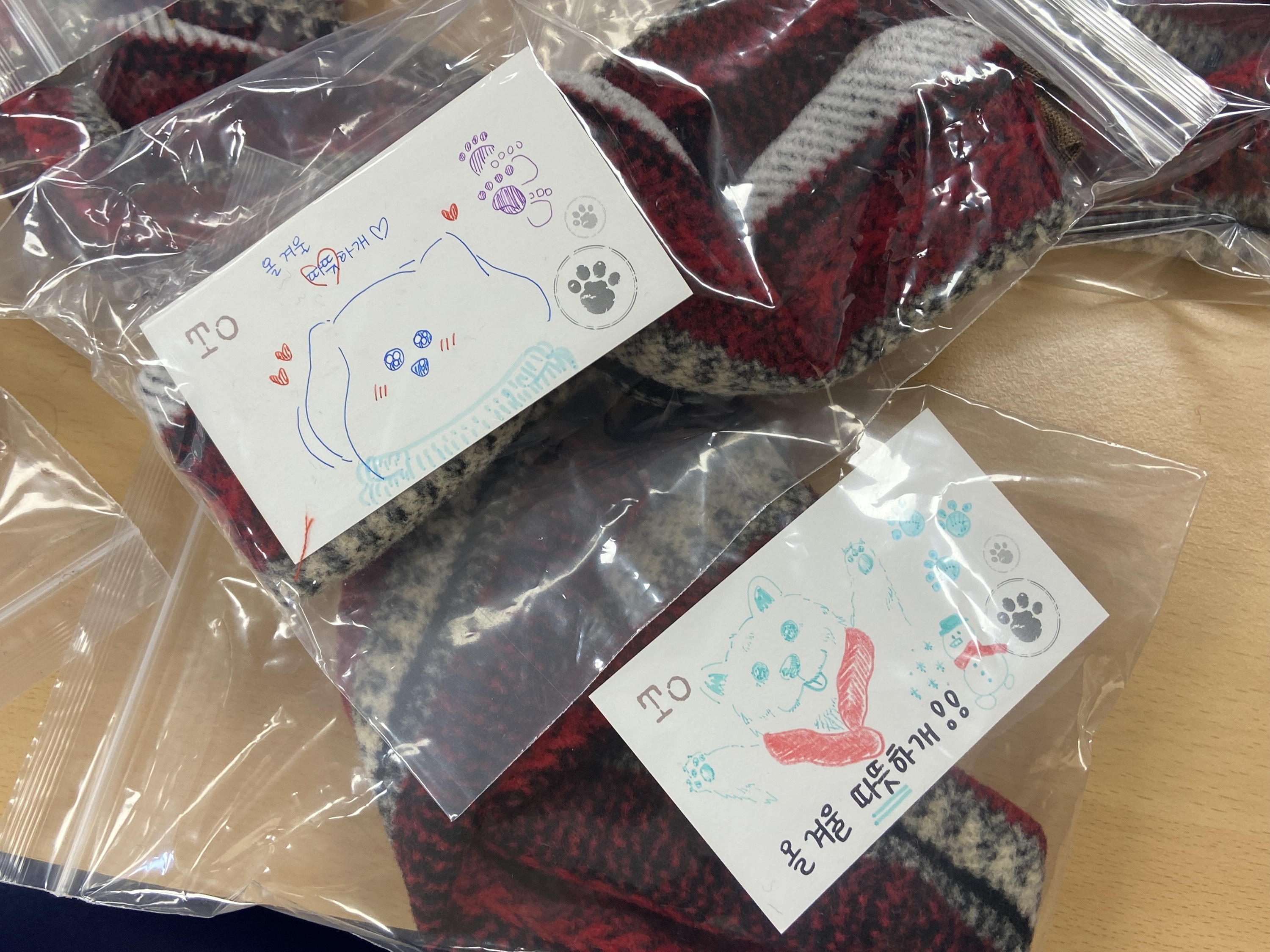 강아지가 이 글을 직접 읽진 못하겠지만 목도리를 통해서 학생들의 마음이 전달될 것 같다는 생각이 들었습니다.🥰🥰