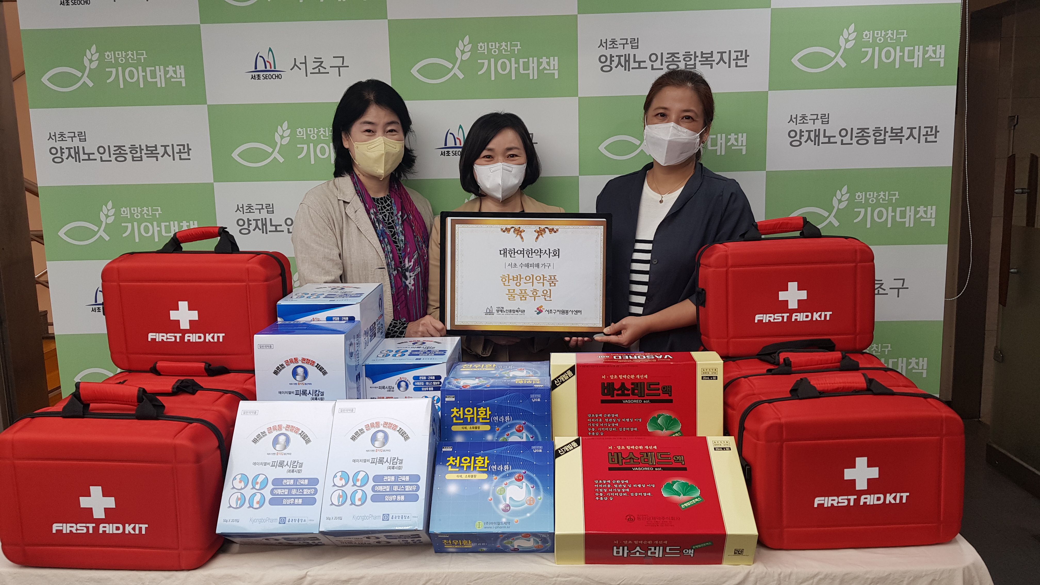 박정아 회장님은 2021년에는 코로나19 응원을 위해 서초구립요앙센터에 585만원 상당, 올해에는 수해피해 가구 응원을 위해 서초구립 양재노인종합복지관에 433만원 상당의 다양한 물품을 기증해주셨습니다.