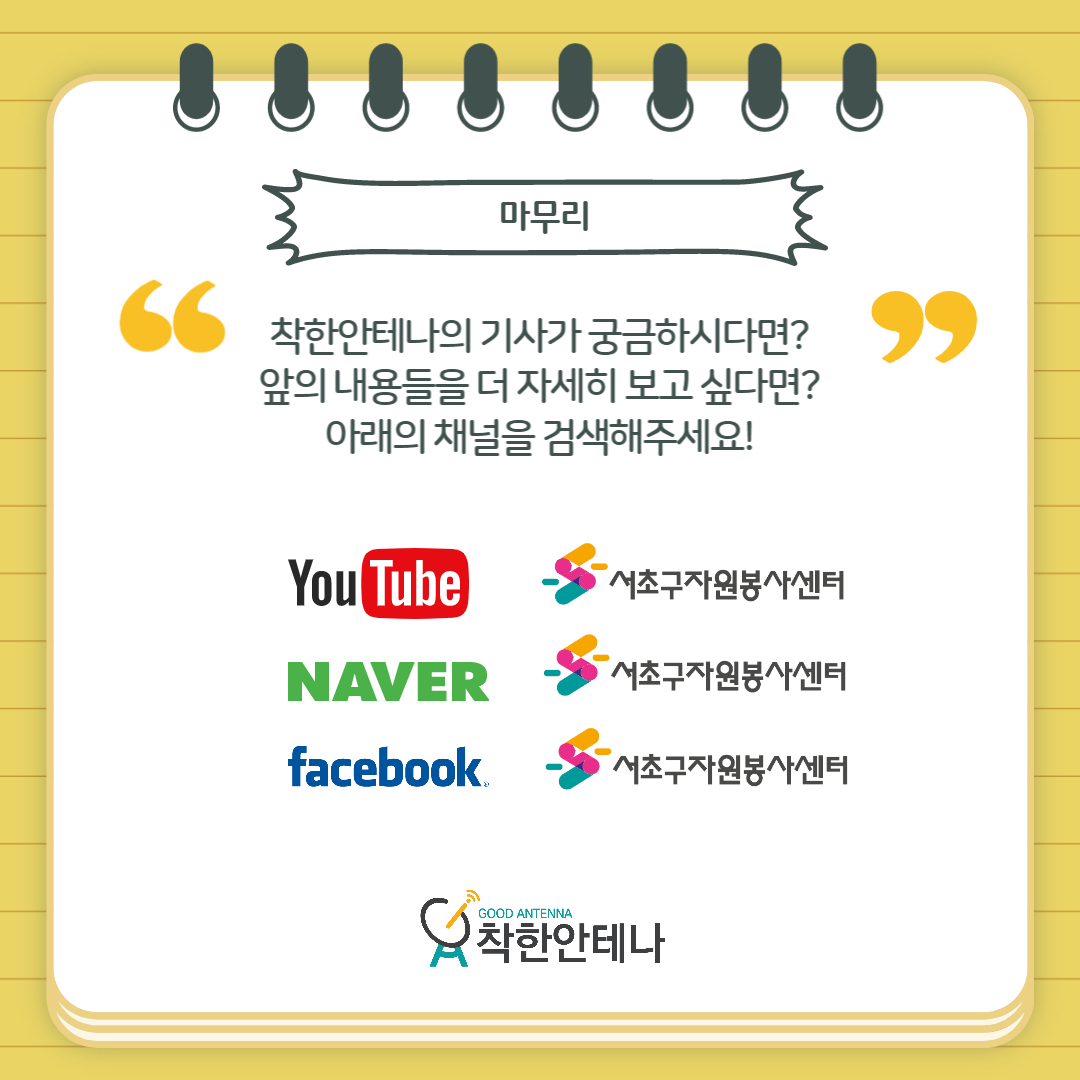 | [착한안테나가 만난 사람들 제21호]방배1동 반딧불센터 김경희 센터장님 편! (0) | 2022.11.23 |
