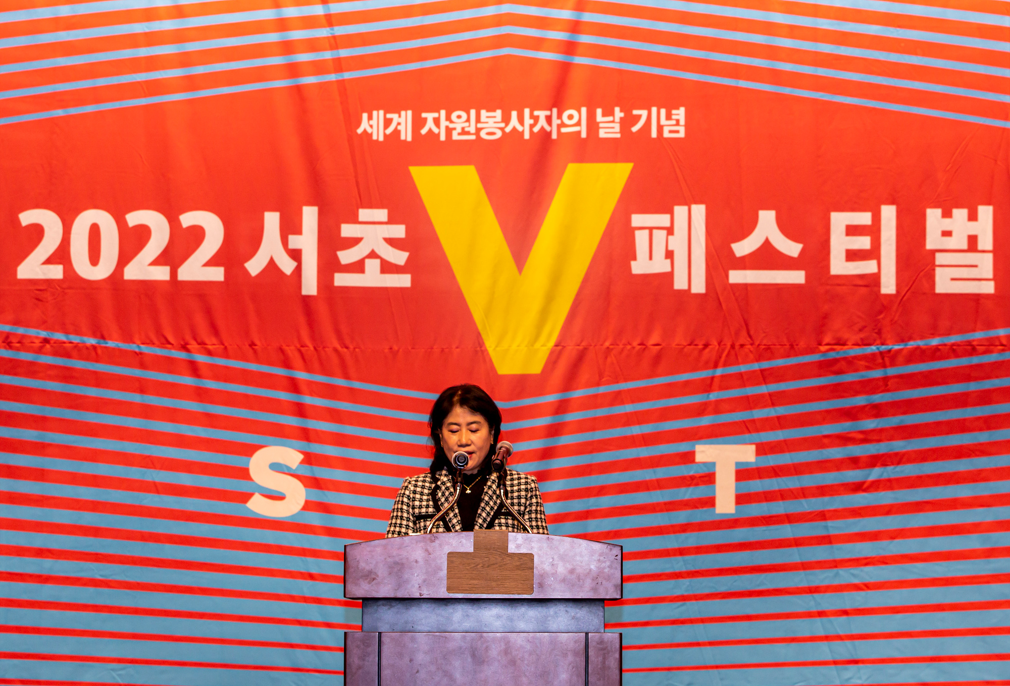 김유미 센터장은 12월 5일 세계 자원봉사자의 날을 기념으로 개최되는 연말 자원봉사 축제인 '서초V페스티벌' 의 주제와